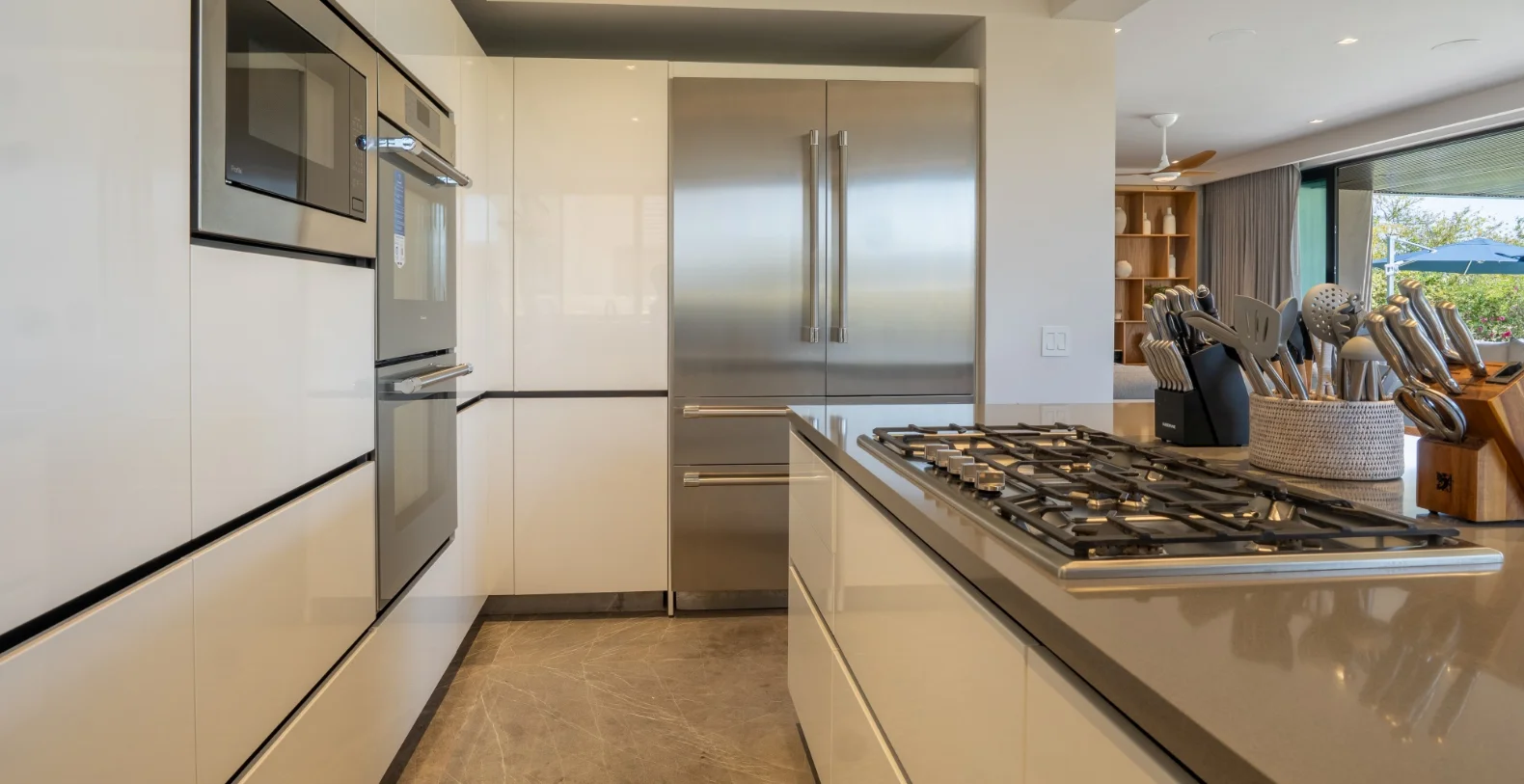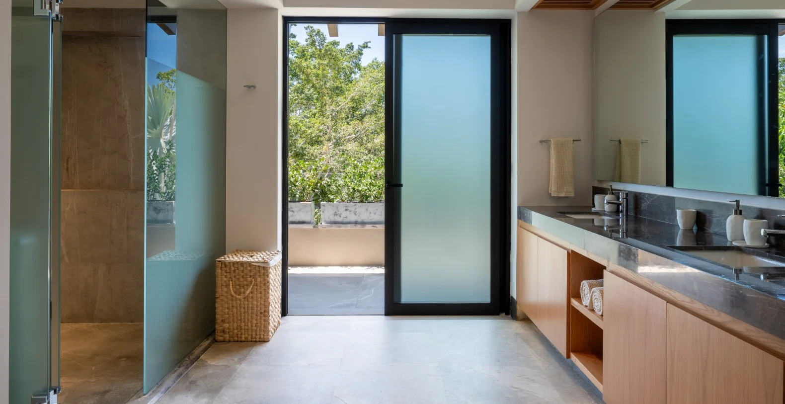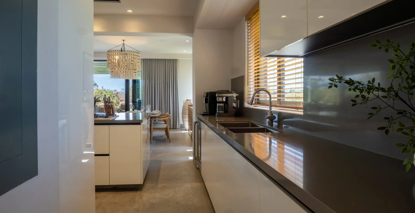The residence features four beautifully appointed bedrooms and four-and-a-half bathrooms, offering comfort and versatility for families or groups of friends. The master suite includes a king-size bed, a luxurious en-suite bathroom, and serene garden views. From the moment you step through the doors, the villa welcomes you with a sense of warmth and serenity. Natural materials, soft neutral tones, and contemporary lines flow throughout, blending modern sophistication with the laid-back spirit of the coast. Every detail has been designed for comfort, from the spacious gathering areas to the gentle sounds of the garden just beyond the terrace. The vacation villa’s open-concept living and dining spaces open seamlessly to the outdoors, connecting the heart of the home with the lush tropical surroundings. A fully equipped kitchen with premium appliances makes cooking a joy, while breakfast preparation each morning (ingredients not included) adds a personalized touch of hospitality.