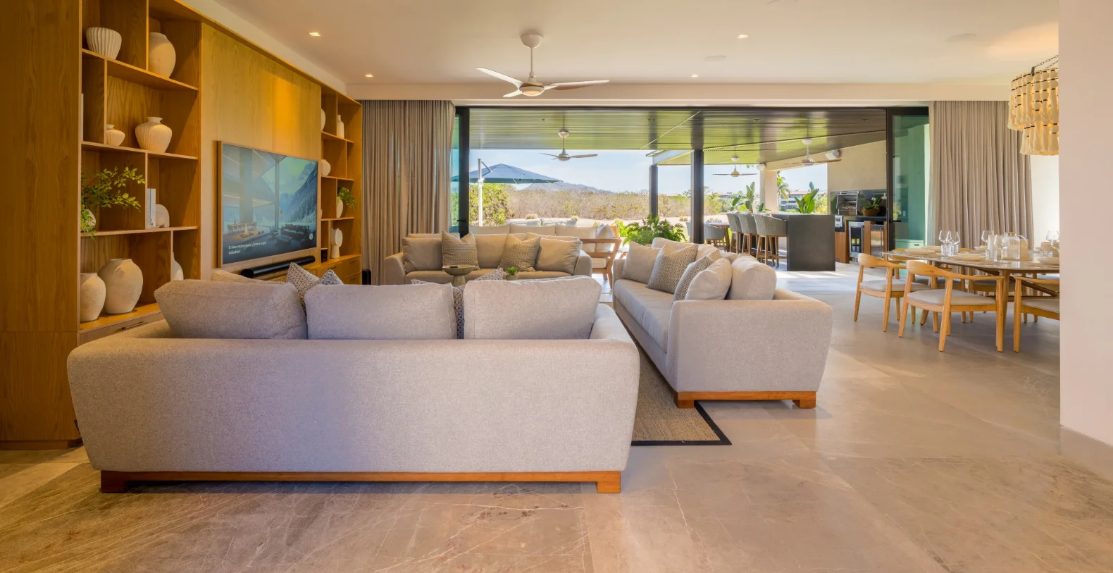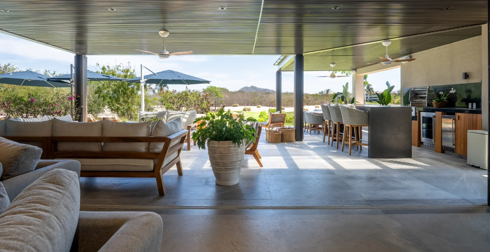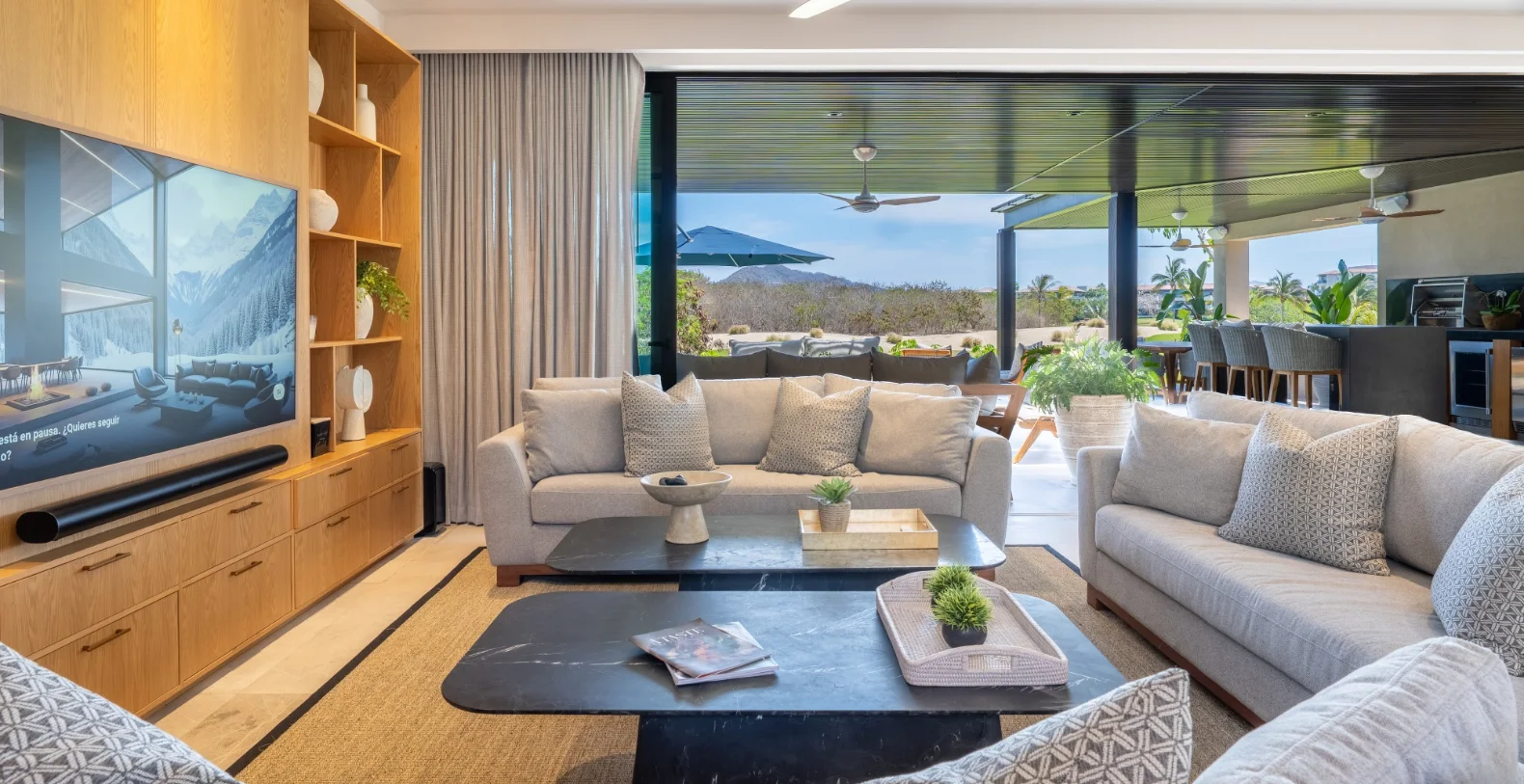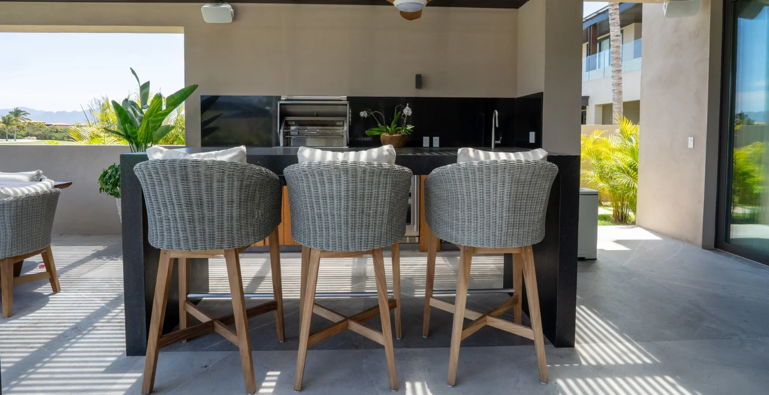 Outside, the villa truly comes to life. A beautiful tropical garden leads to your private lounge area with infinity pool and outdoor kitchen complete with a BBQ grill, ideal for alfresco dining or sunset gatherings under the stars. Whether savoring a slow breakfast in the shade or enjoying grilled seafood with family as the evening breeze rolls in, every moment feels perfectly in tune with Punta Mita’s relaxed elegance.