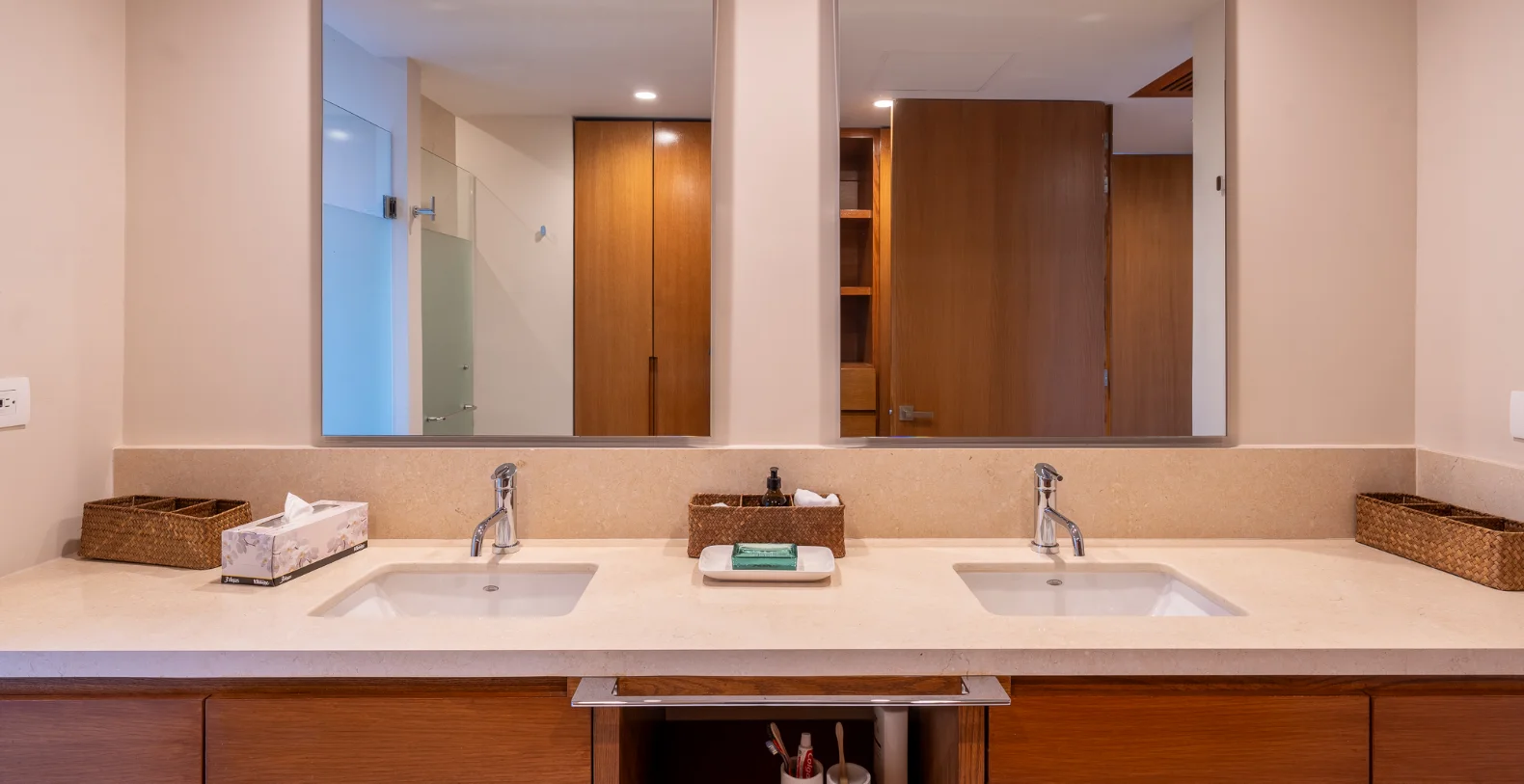 Each of the 4 bedrooms is designed for ultimate comfort. The master suite features a king-size bed, an en-suite bathroom with bathtub and shower, air conditioning, and a furnished terrace with breathtaking ocean views. The other 3 bedroom each includes two queen size beds an en-suite bathroom with shower. This condo also features a service bedroom with private bathroom, ideal for staff or kids, which can be included upon request.