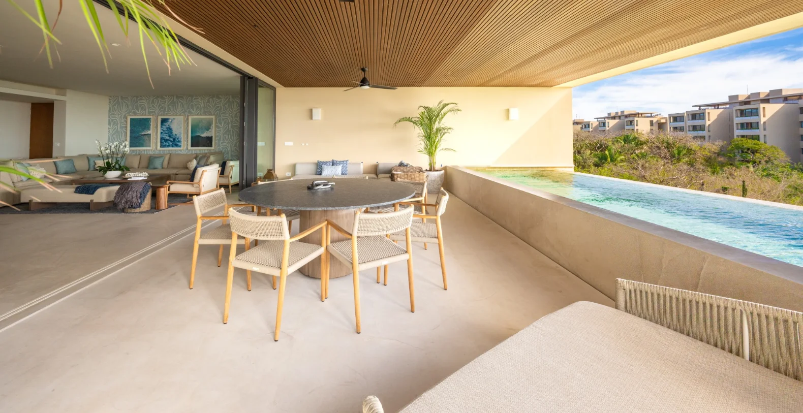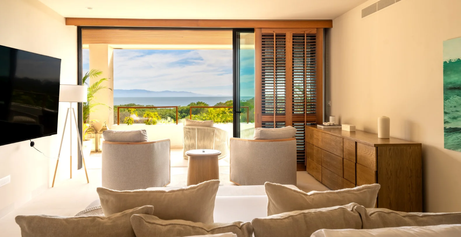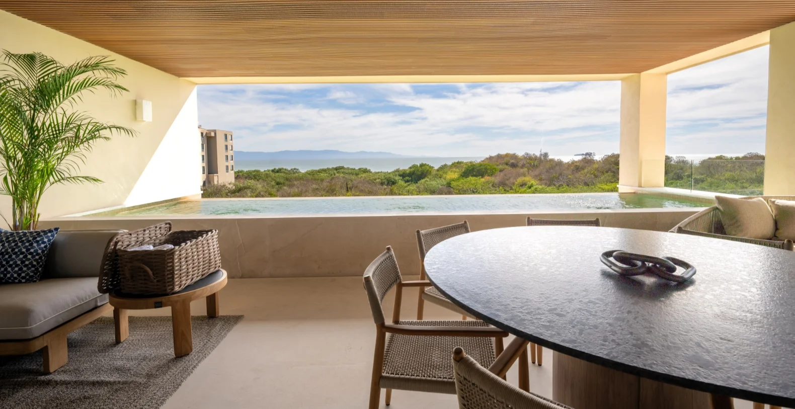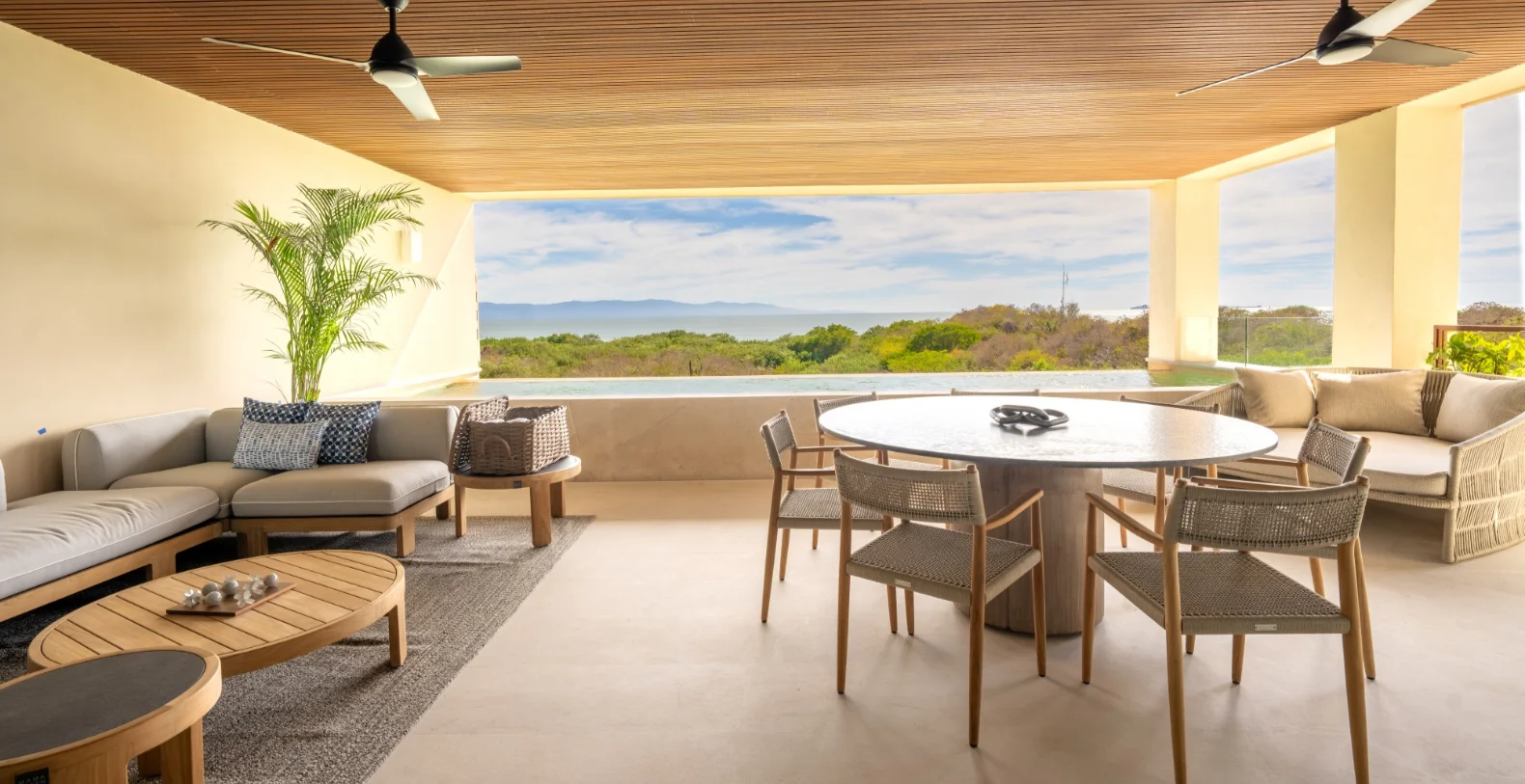 Surf Residences 221 is a luxury vacation condo with refined design, and beautiful views of Punta Mita. Located in the private Surf Residences enclave within the Punta Mita Resort, this stunning four-bedroom condo offers panoramic ocean and golf course views. The Surf Residences community is one of Punta Mita’s newest and most desirable addresses, known for its privacy, security, and proximity to some of Punta Mita’s best surfing beaches, it offers the perfect balance between adventure and relaxation.