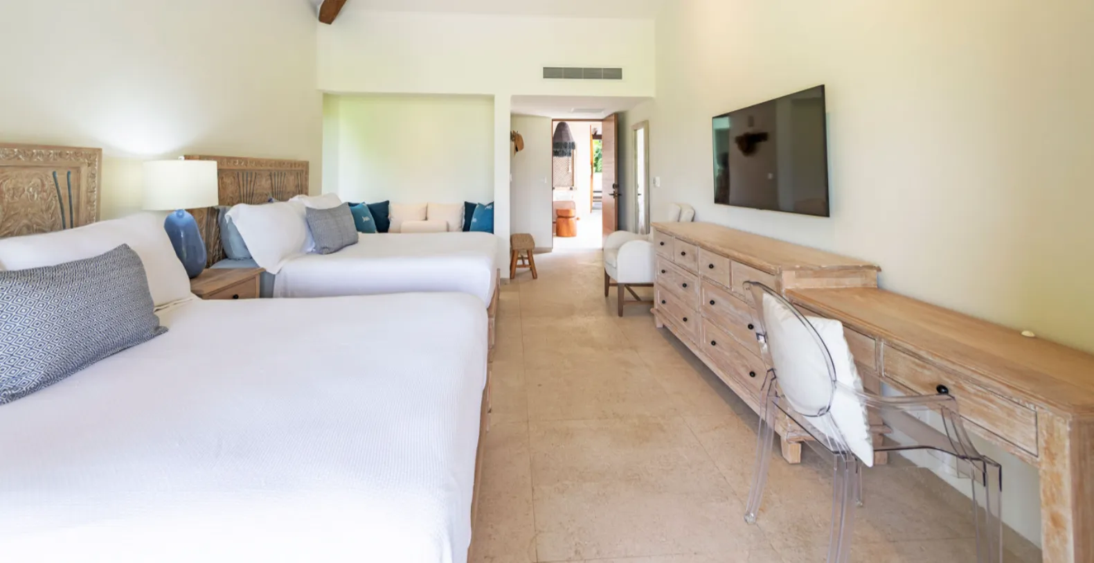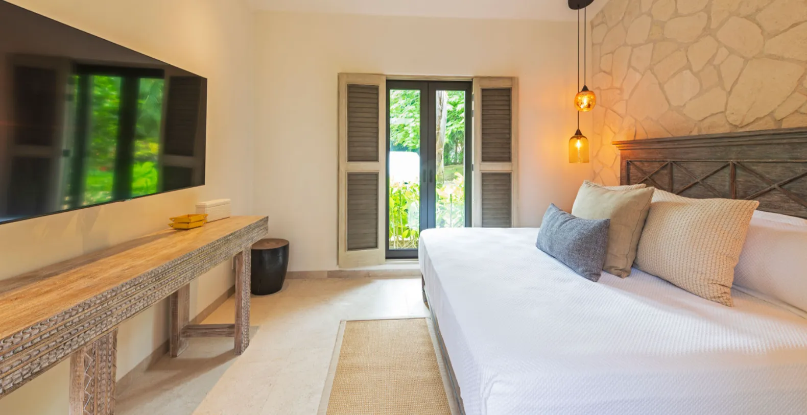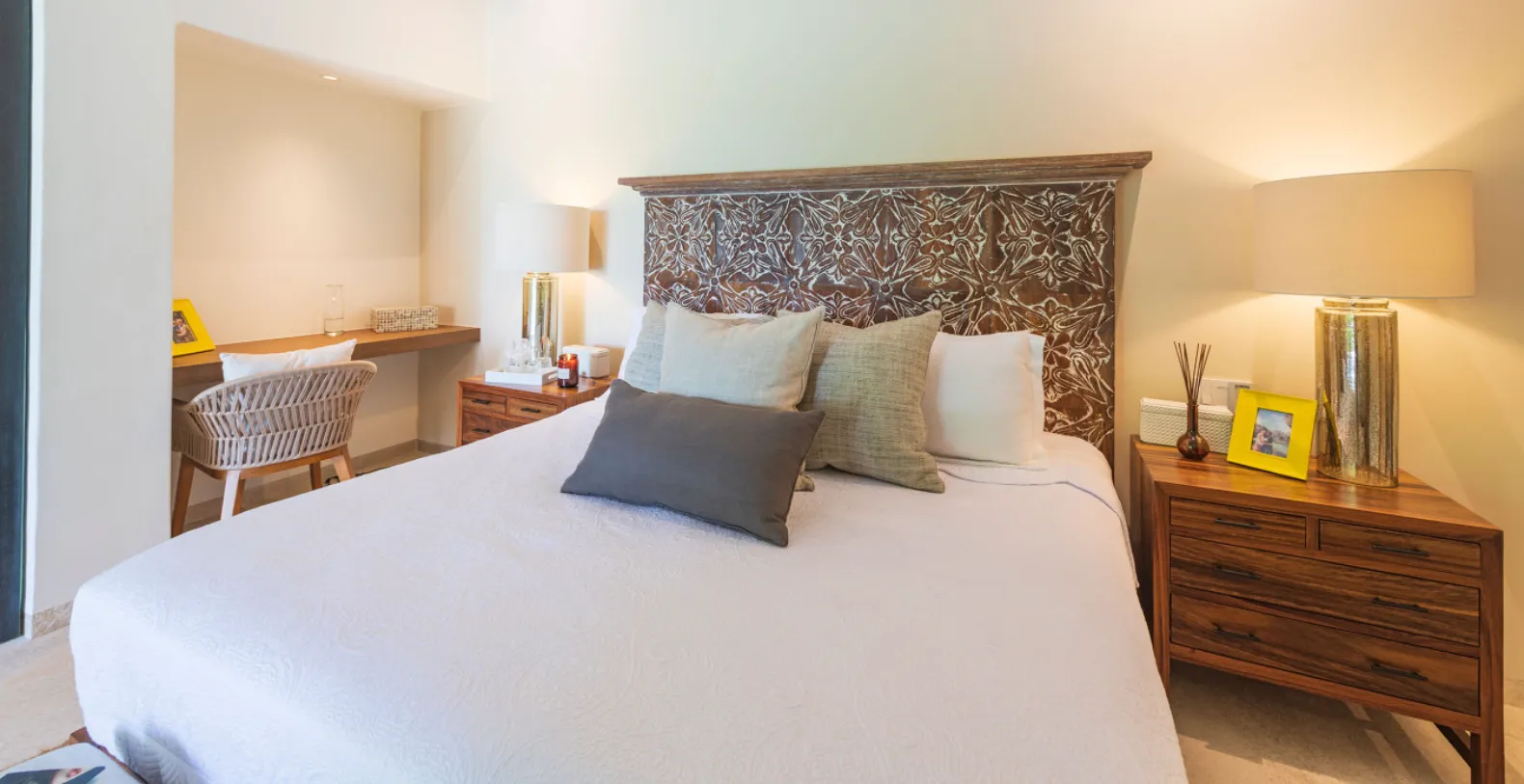 The villa’s fully equipped kitchen, enclosed garage with space for a luxury vehicle and golf cart, and thoughtful touches such luxury bathroom amenities elevate the experience. Villa Frida is air-conditioned, and its single-level layout makes it perfect for families or groups seeking comfort and style in one of Mexico’s most exclusive resorts.