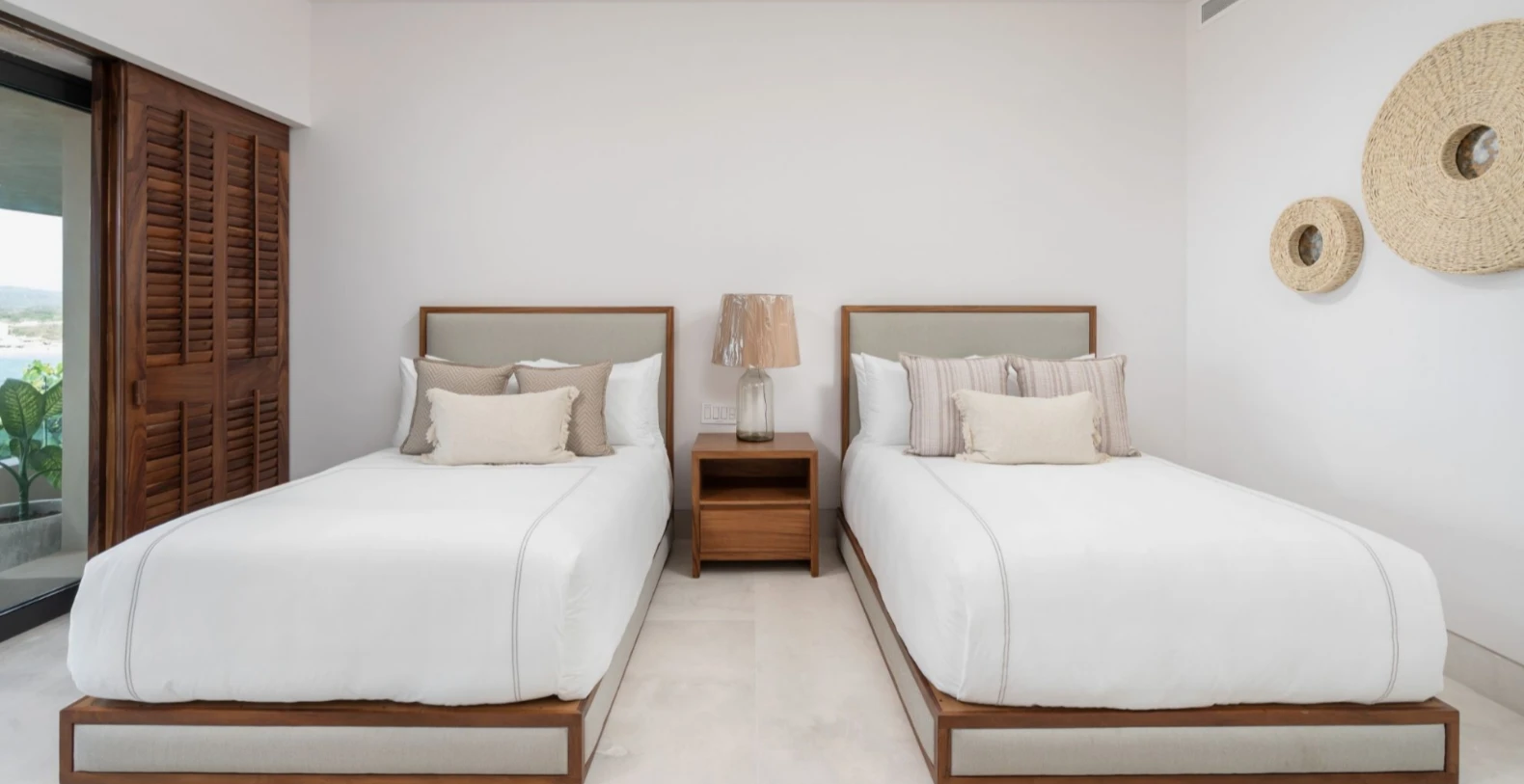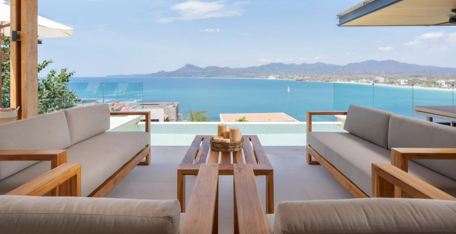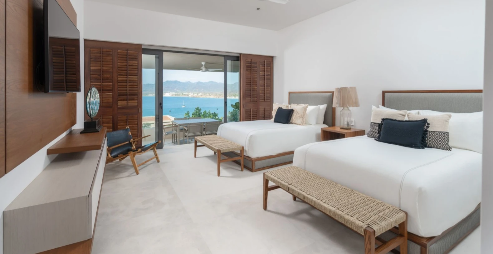 Villa Lupe accommodates up to 8 guests across four beautifully appointed bedrooms, each with an en-suite bathroom and private terrace. The master suite features a king bed and sweeping ocean views, while the remaining bedrooms include queen beds, perfect for children, couples, or friends traveling together. Calming décor, natural materials, and soft tones create an atmosphere of relaxed coastal luxury.