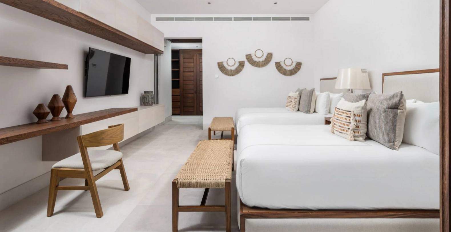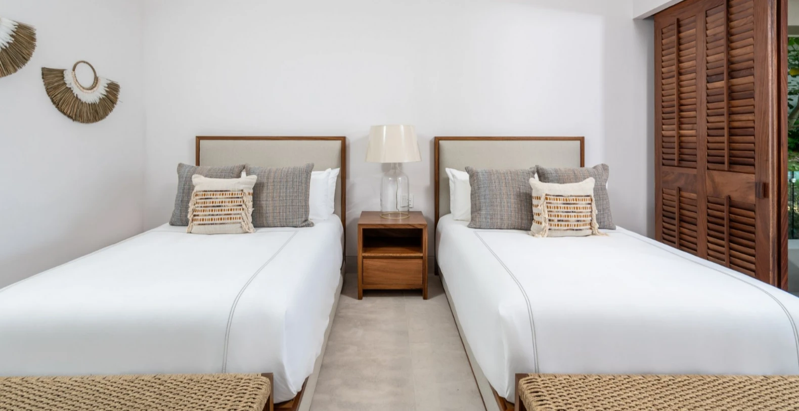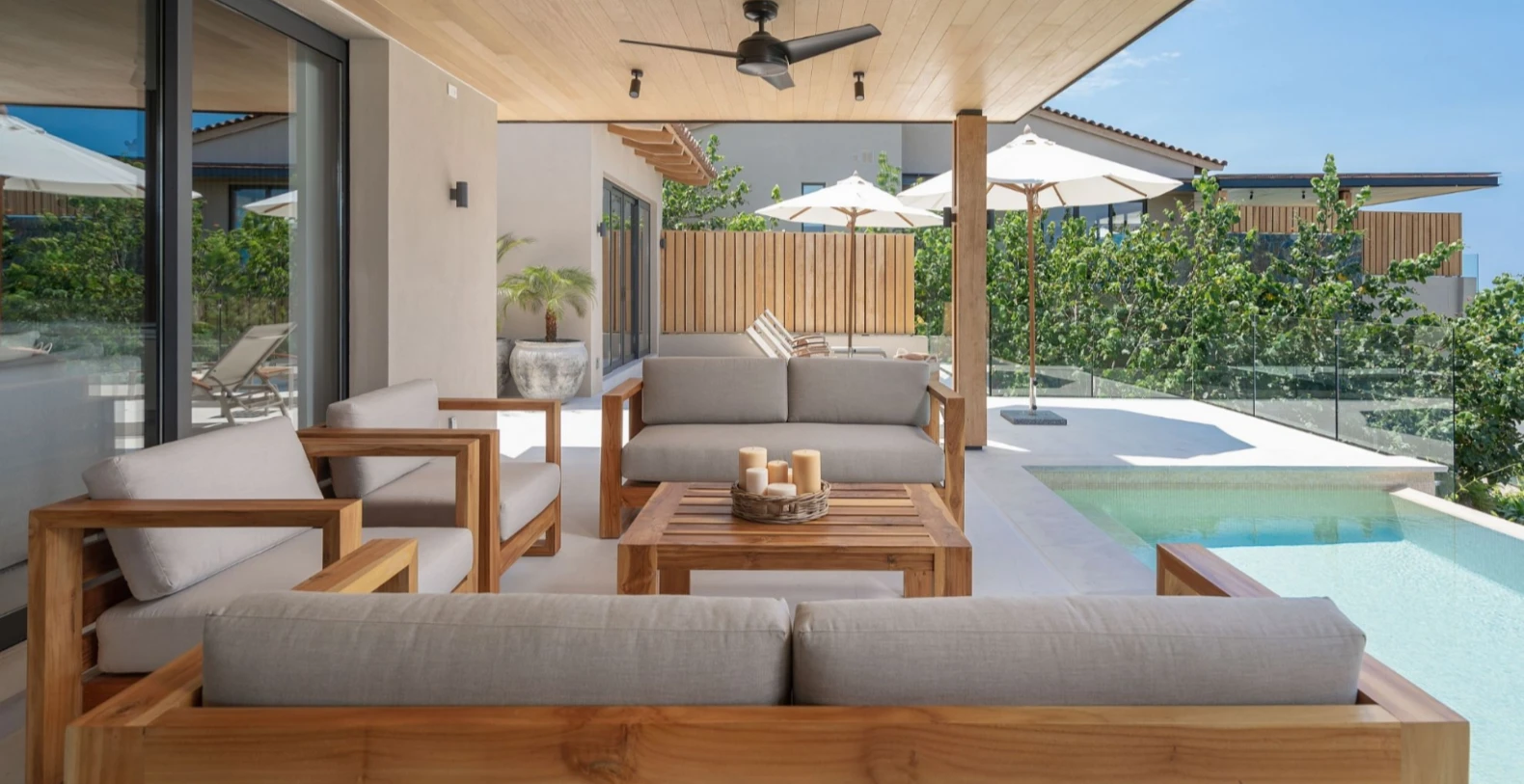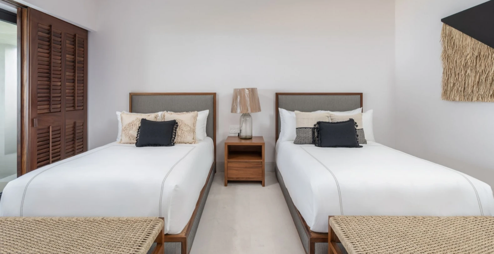 Villa Lupe accommodates up to 8 guests across four beautifully appointed bedrooms, each with an en-suite bathroom and private terrace. The master suite features a king bed and sweeping ocean views, while the remaining bedrooms include queen beds, perfect for children, couples, or friends traveling together. Calming décor, natural materials, and soft tones create an atmosphere of relaxed coastal luxury.