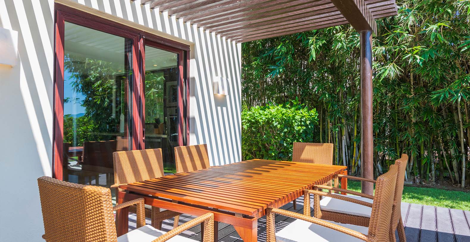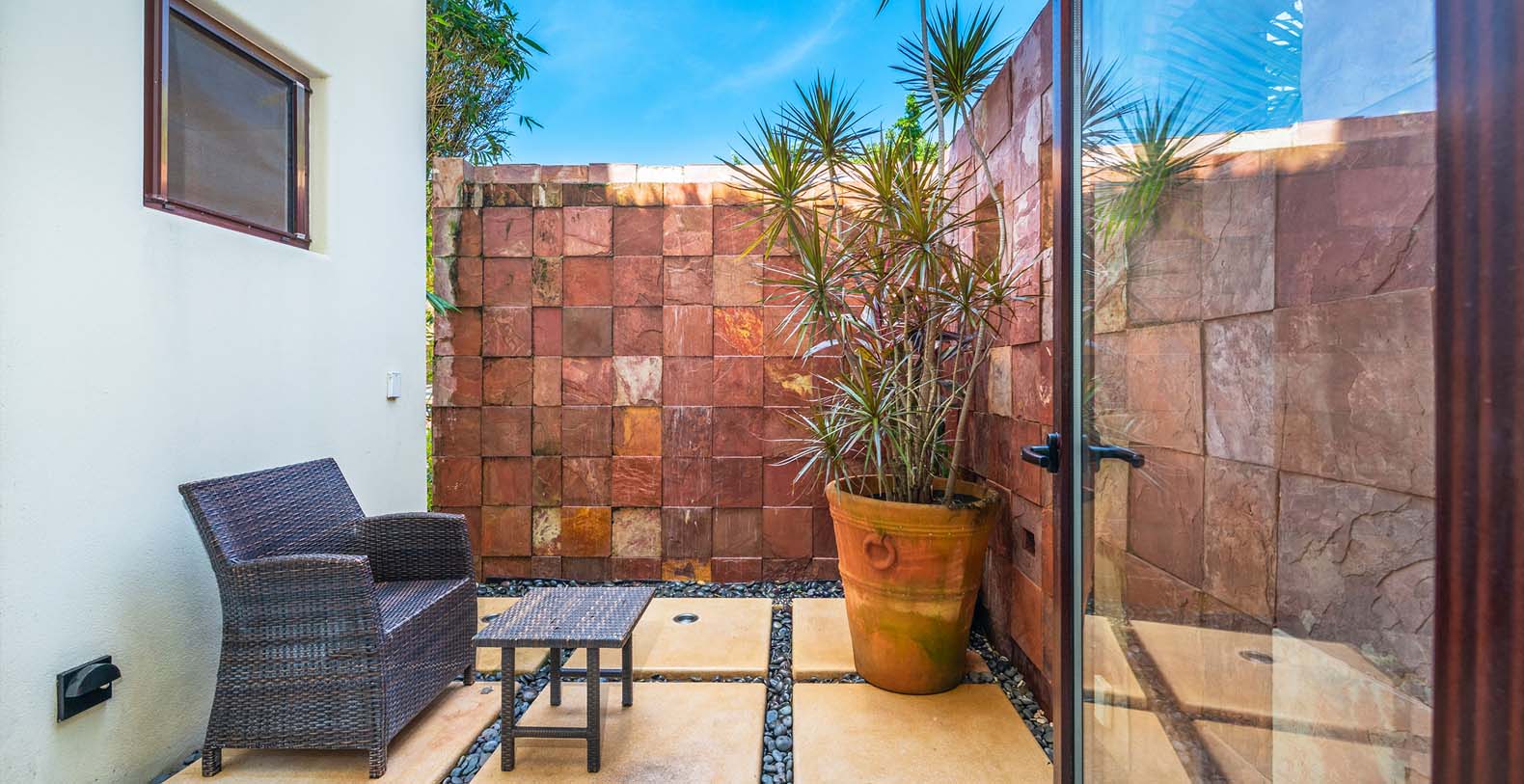 Villa Onix itself Is a two-story casita featuring 3 bedrooms, each with luxury ensuite bathroom and accommodating up to 10 guests. Bedrooms are spacious with clean design and ample closet space. The villa offers 3,800 sq. ft. of beautifully designed indoor-outdoor living space and it offers really beautiful place to stay for your vacation. The ground floor houses a large kitchen with breakfast bar, all the necessary kitchen appliances for guests to feel comfortable and prepare their own meal. Private Cook or other assistant staff could also be arranged should the guests need assistant on that front. Next to the kitchen is the indoor dining area and a nicely organized TV corner with plenty of space for guests. The common living areas open to a landscaped patio with a private pool, outdoor lounge areas and alfresco dining area. The backyard is green and beautifully landscaped that your feel like entering a Zen garden.