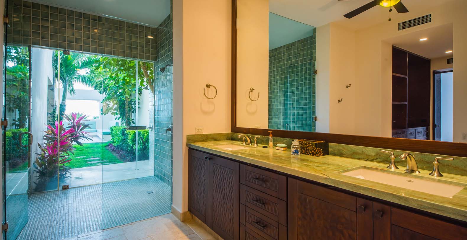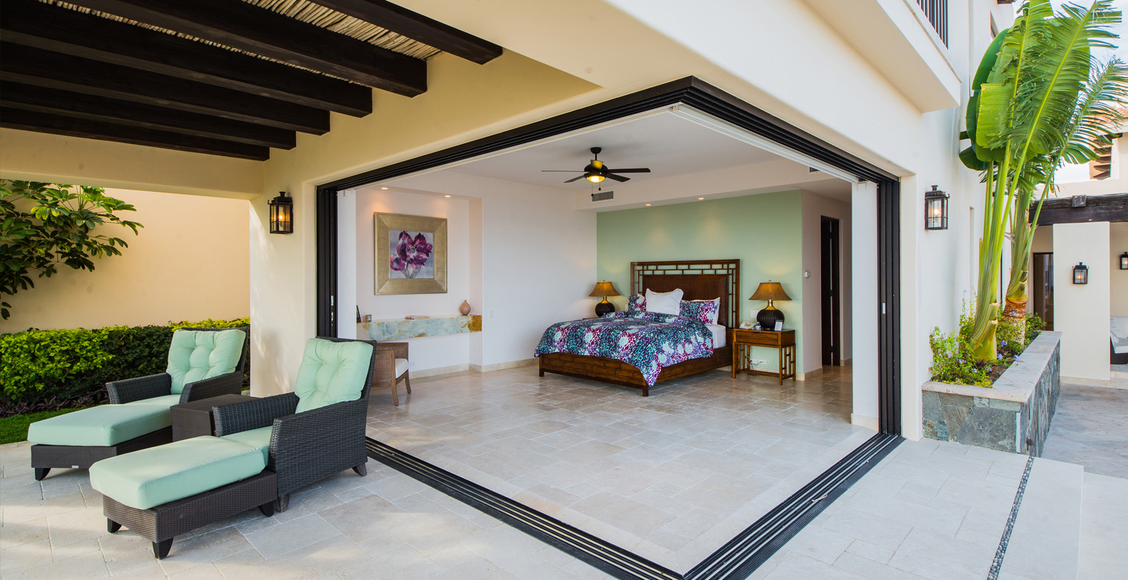 Each of the four master suites has a king-sized bed, and ensuite with his and hers vanities, air conditioning and a ceiling fan. Open the full wall sliding glass windows and bring the outdoors inside. Each master suite has its own private patio with lounge chairs and an ocean views.