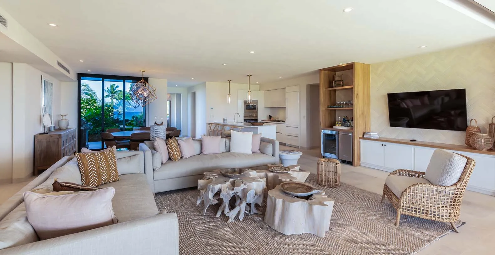 Las Marietas D101 in Punta Mita is a vacation rental where you can watch the ocean waves across the 18th fairway of the Jack Nicklaus Signature Bahia Golf Course from this contemporary condo at Punta Mita. Part of the exclusive Las Marietas community, the residence features its own private pool, gourmet kitchen, and breezy living areas. Indulge in the resort’s world-class spa, sip cocktails at its beach clubs, and conquer some of the best surf breaks on Mexico’s Pacific coast. Las Marietas is a private enclave of just 42 residences and it enjoys a prime location beside the 18th hole of the Jack Nicklaus Signature Bahia Golf Course and directly faces the Pacific Ocean and the iconic Marietas Islands. This condominium complex offers seven buildings with easy tropical feel and an array of in-building amenities and lock-offs for guest facilities. With privileged access and proximity to the St. Regis, Punta Mita amenities guests are always excited and happy with their choice of vacation.