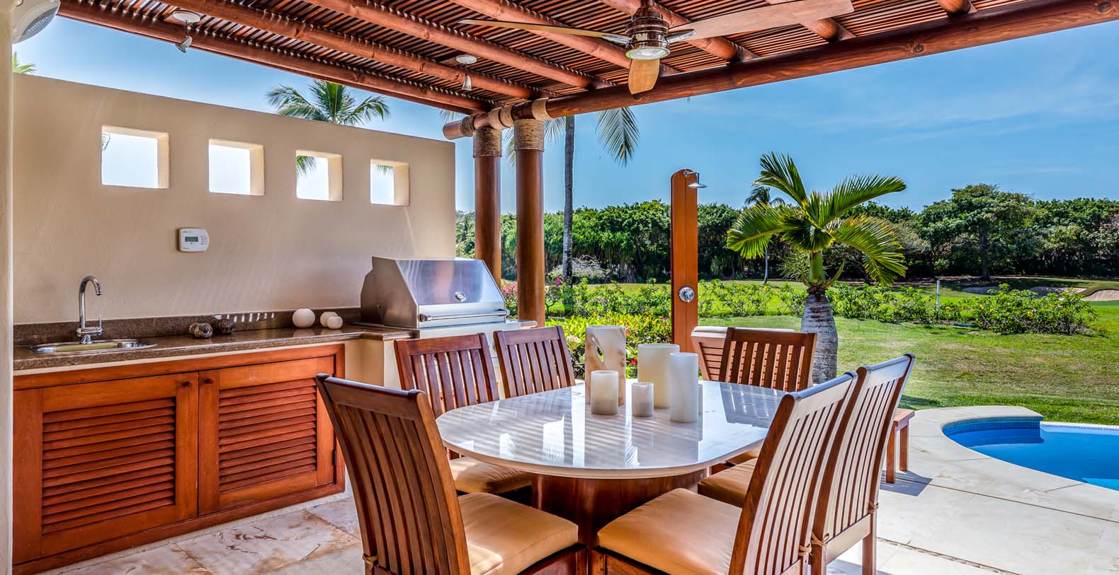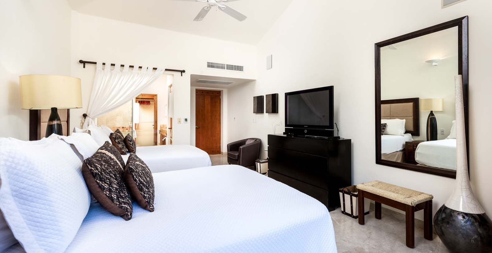 Outside, you’re surrounded by swaying palms and tropical gardens. Spend lazy afternoons by your private pool, sip cocktails at sunset, or wander just steps away to explore Punta Mita’s famous golf courses and resident-only beach clubs. Whether you’re an avid golfer, a family seeking privacy, or a group of friends looking for a stylish escape, Las Palmas 5 delivers a seamless mix of relaxation and adventure. Guests staying at Las Palmas 5 enjoy access to Punta Mita’s world-class amenities, including two Jack Nicklaus Signature golf courses, a tennis center with 10 courts, a fully equipped fitness center, and several exclusive beach clubs along nine miles of pristine coastline. Our Dream Exotic Rentals concierge team is ready to personalize every detail of your stay – from arranging private chefs and spa treatments to planning unforgettable excursions around the Riviera Nayarit.