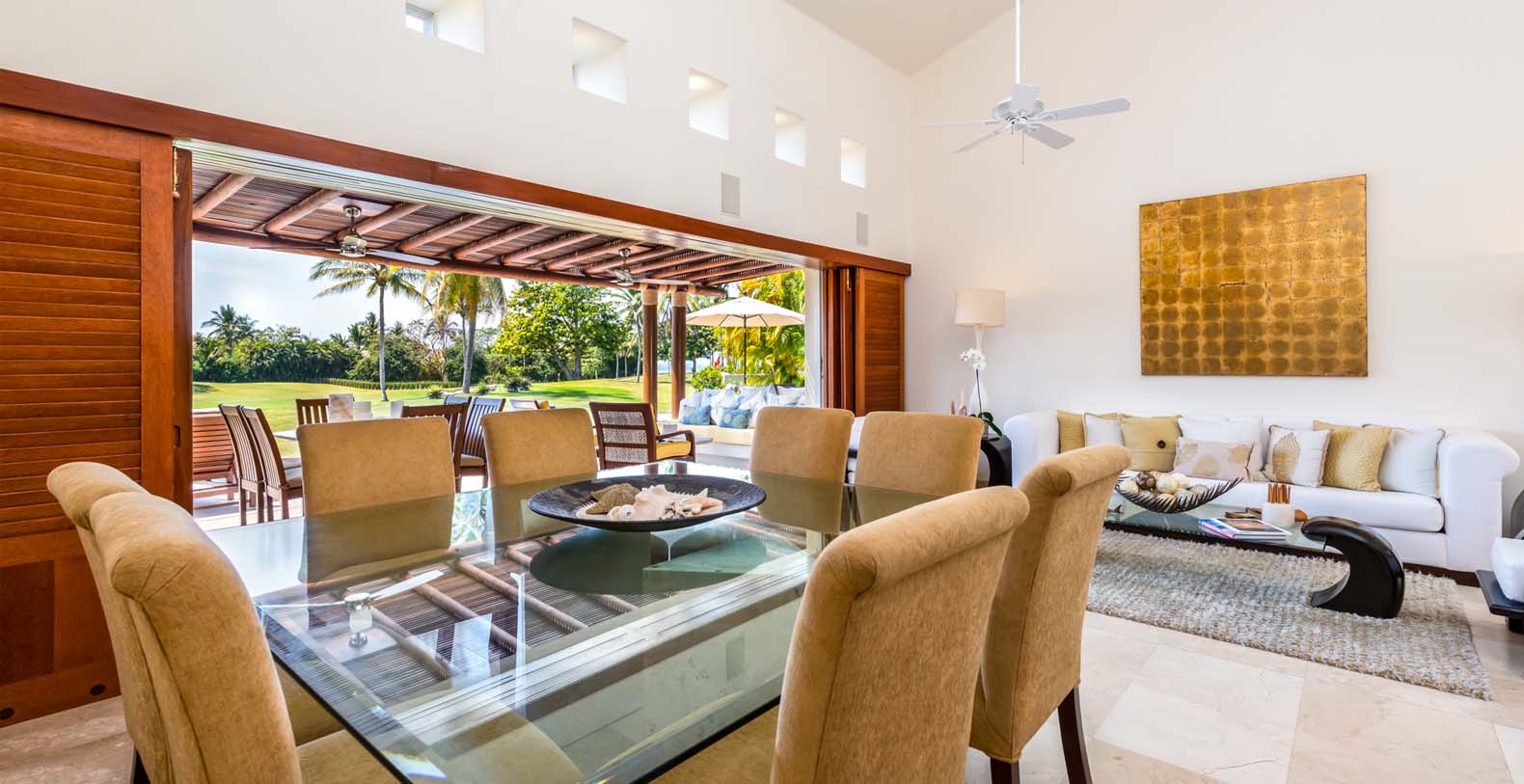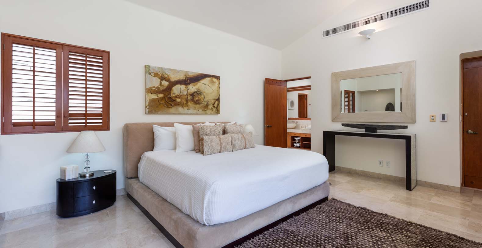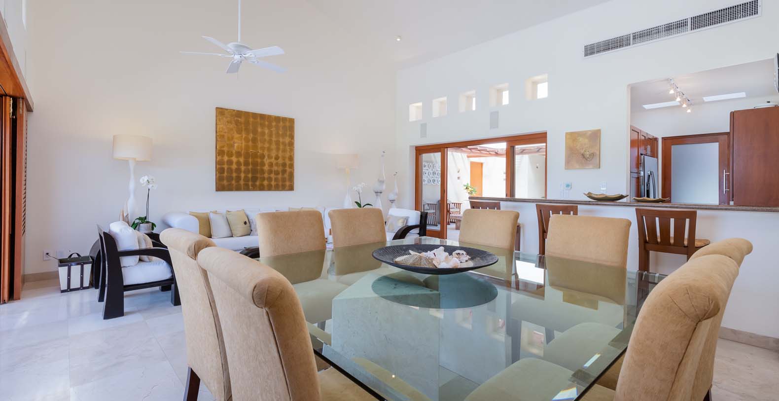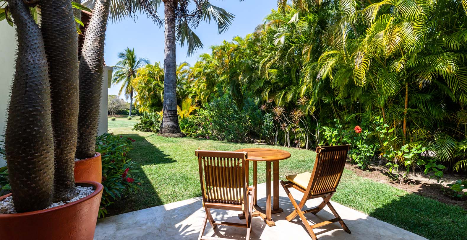 Las Palmas 5 is a private vacation oasis in the Heart of Punta Mita. Near the 4th fairway of the Jack Nicklaus Signature Pacifico Golf course, where you can see the famous ‘Tail of the Whale’ island green, this amazing vacation villa embodies Punta Mita’s open-air lifestyle. Crafted as a single level, three bedroom, three bath villa, it features golf course and partial ocean view and living/dining room that opens onto an expansive terrace with outdoor dining and your own plunge pool. Guests are just a 5 minute walk to the Residents’ Beach Club, which is only accessible by members and guests of Punta Mita. Las Palmas 5 is in-between Four Seasons Resort and the St. Regis, two of the finest spots to enjoy lunch or dinner.
