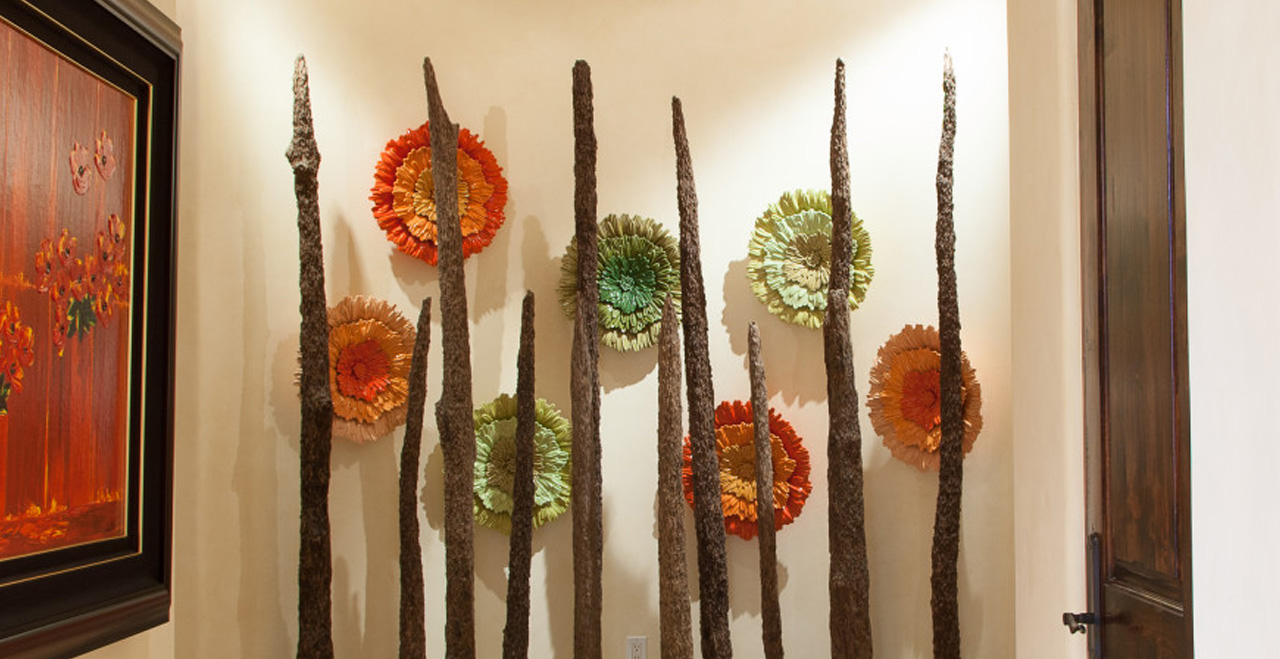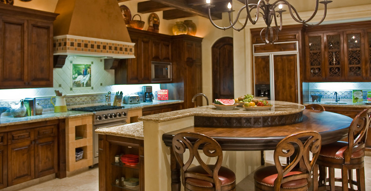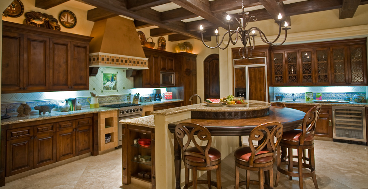 Commissioned all of the interior décor for Suenos del Mar. This includes a collection of custom-made furnishings, antiques and original art from Spain and Mexico, handmade Mexican dishware, custom furnishings and fabrics, hand-carved armoires, hand-forged iron chandeliers most notably, the very dramatic chandelier in the entry foyer and imported, deep blue mosaic tiles for the pool. An artist was brought on board to hand-paint the tile in the kitchen and also to provide soft accents around the living room ceiling arches. The total affect is that of an artisan, Spanish Colonial dream home at the edge of the sea.