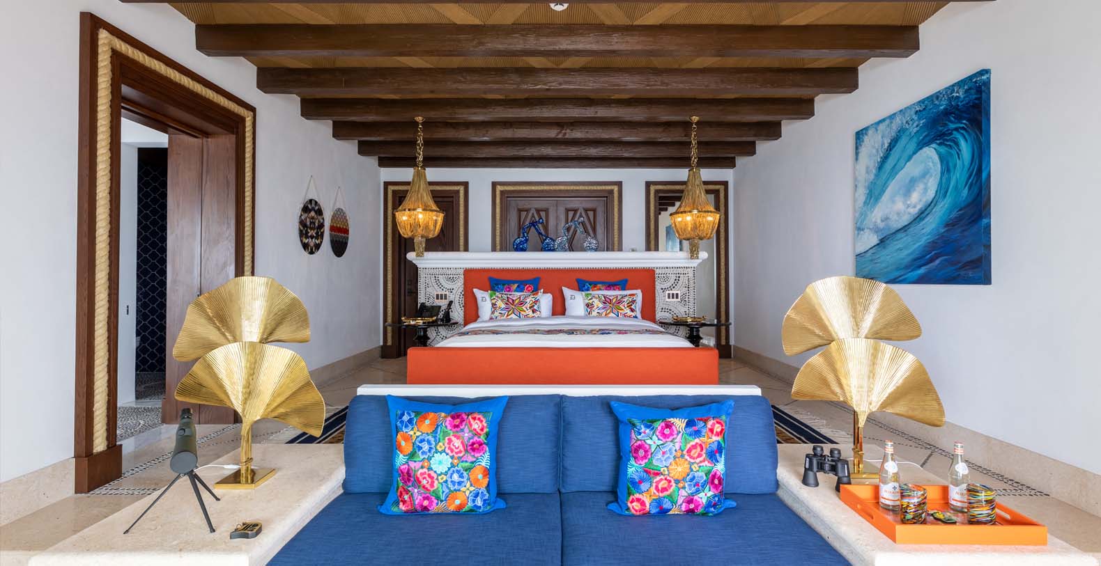 Boasting a beachfront location, La Datcha directly overlooks the ocean. The property is made up of three interconnected buildings, two or three floors each. Most rooms are designed in the Mexican-American style, which comes through clearly in the kaleidoscope of textiles and mosaics, paintings, whimsical sculptures and woven decor. The US- and European-made furniture provides the high level of comfort it is known for, while the unlikely marriage of Russian patterns with the Mexican ornaments works remarkably well highlighting the Russian roots of the Datcha’s host.