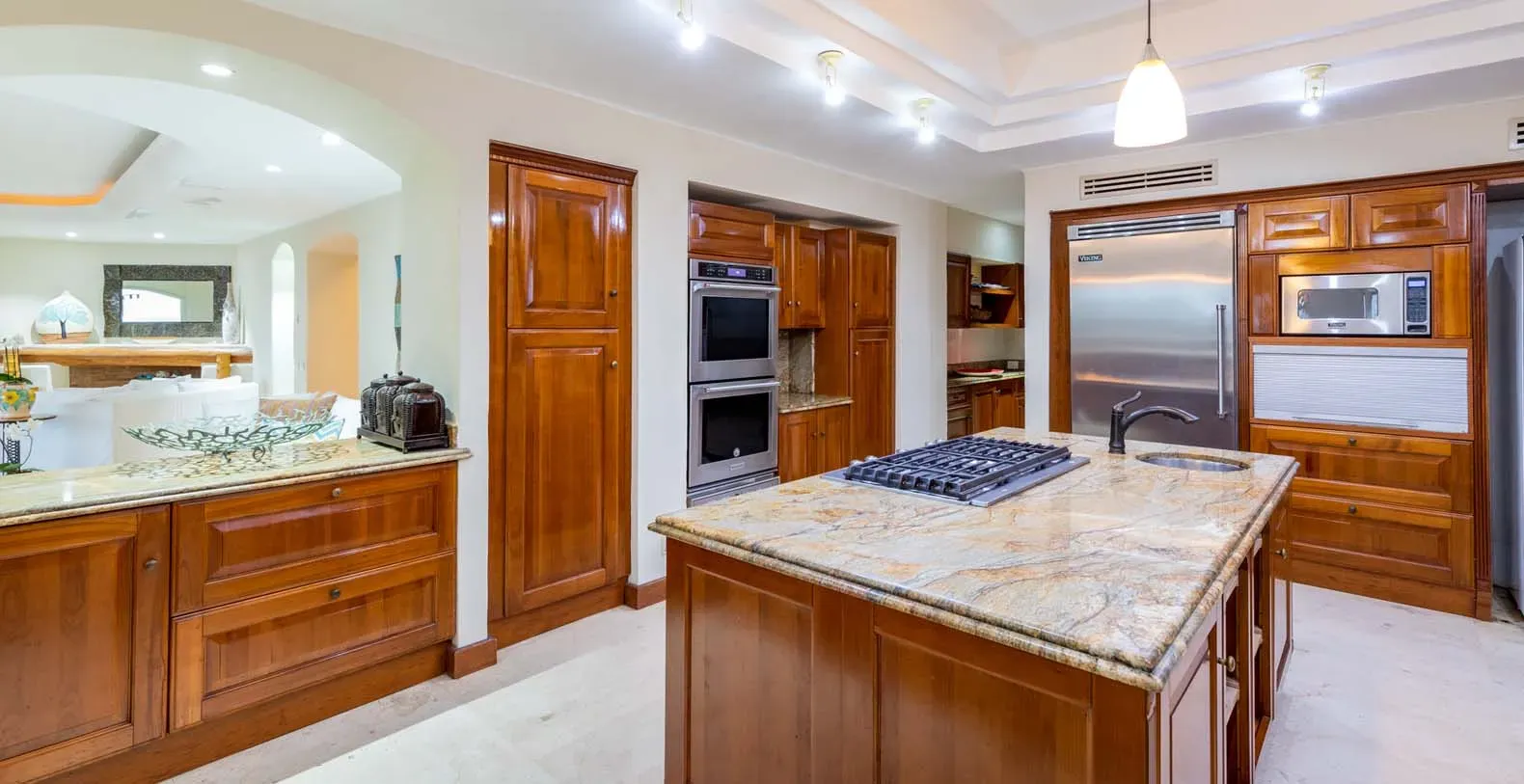 With 8,900 square feet of marble-slabbed living space, Casa Caleta is designed for both relaxation and entertainment. The centerpiece is the salt-water filtered, heated infinity pool and 12-person spa overlooking the Pacific Ocean. Guests can soak up the sun on the expansive terrace or enjoy open-air dining under the shaded palapa with uninterrupted sea views. Inside, the villa blends Mediterranean architecture with modern comforts. A sweeping staircase, marble floors, and elegant décor set the tone for a refined yet welcoming retreat. Spacious common areas include a media room with a 60” Samsung Smart TV, a formal dining room with ocean views, and a state-of-the-art kitchen where daily fresh juices and meals are prepared to order. The six suites are sanctuaries of comfort, each with ensuite bathrooms, L’Occitane de Provence bath amenities, and zoned air conditioning. The master suite offers dual outdoor showers and spectacular ocean views, while every room is designed for restful privacy.
