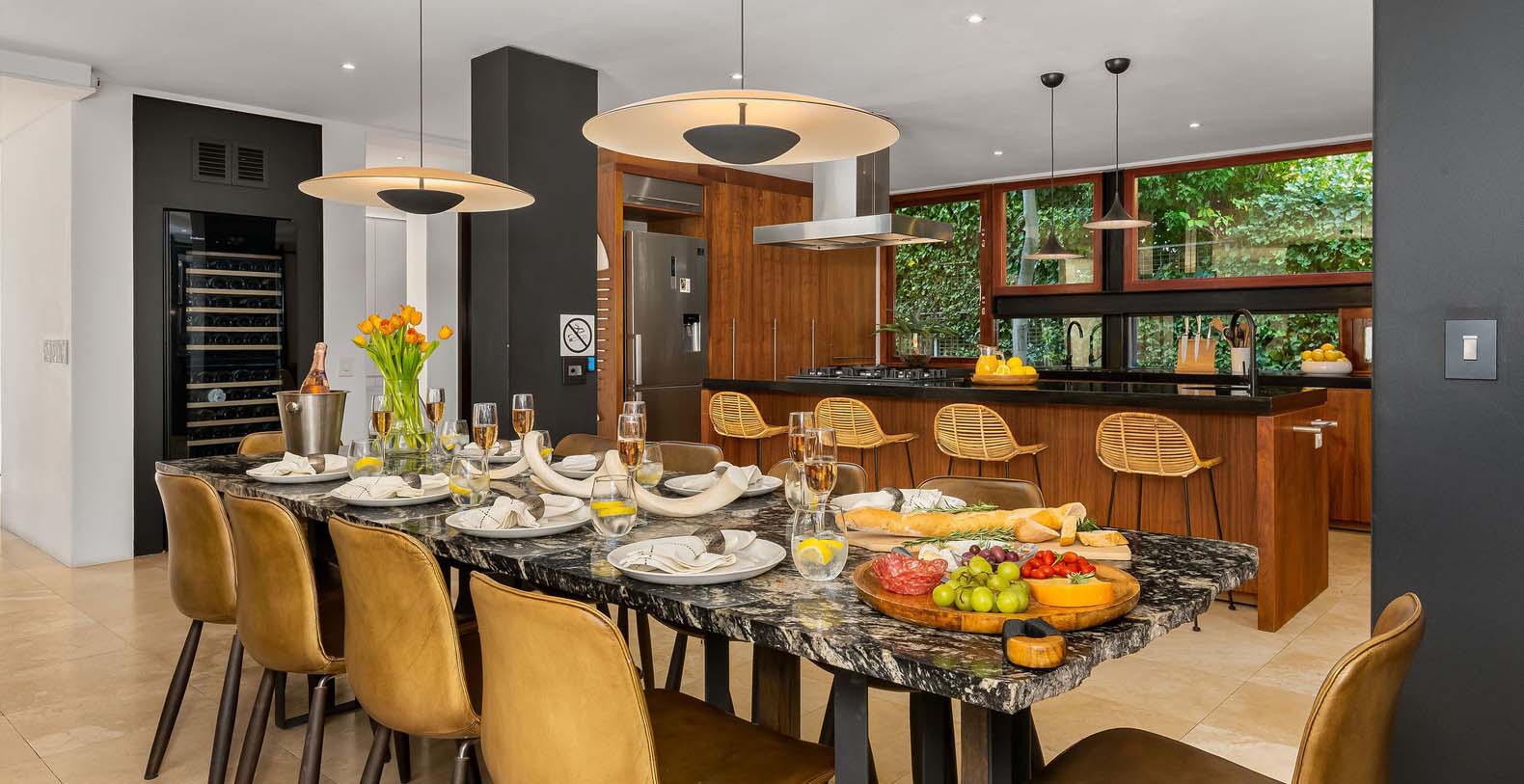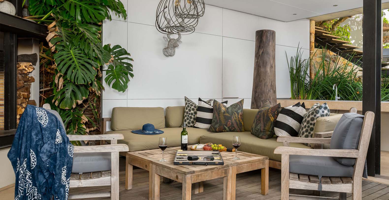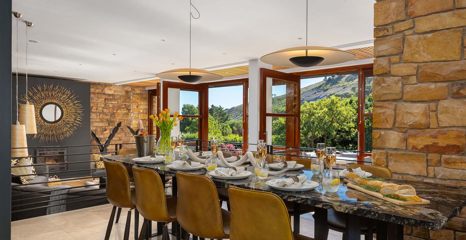 Villa Le Thallo, in Camps Bay is an incredible luxury living unfolds here, at the iconic Villa Le Thallo. This newly revamped property oozes boldness, strength and yet sophisticated elegance. Contrasting decor, textures and color embody a subtle African earthy feel, while contemporary art pieces captivate. Surrounded by coastal greenery, you’re gently wrapped in sublime privacy: guarded by Lions Head, and the sparkling Atlantic ocean glittering in the background. Splash out in the enormous outdoor rim flow pool, laze in the sun loungers or fire up the pizza oven for some epic outdoor entertaining under the giant oak tree. Otherwise, step indoors to escape to one of the plush bedrooms, or open plan living area with floor-to-ceiling glass doors serving superlative views. This is one for the books. Look no further.