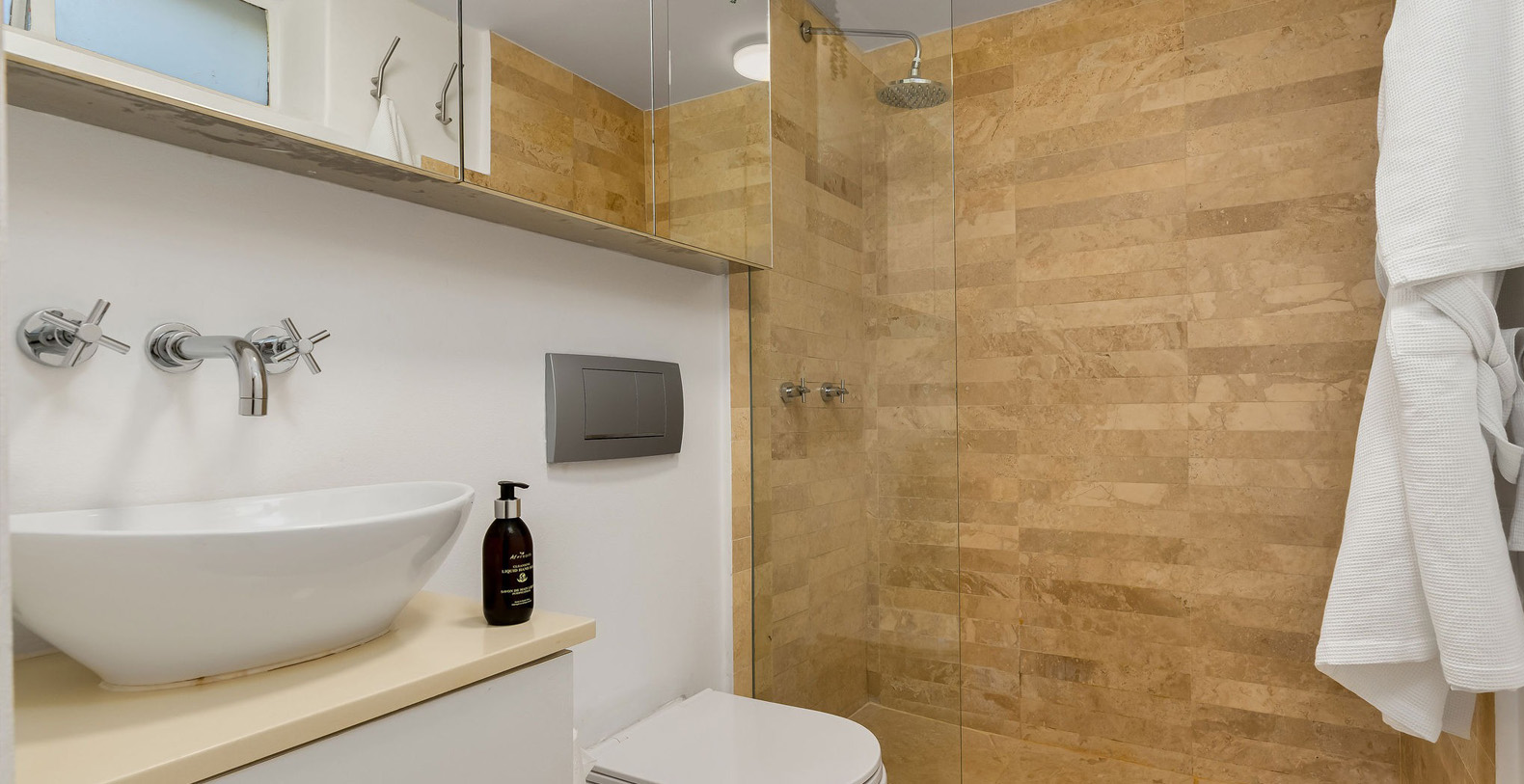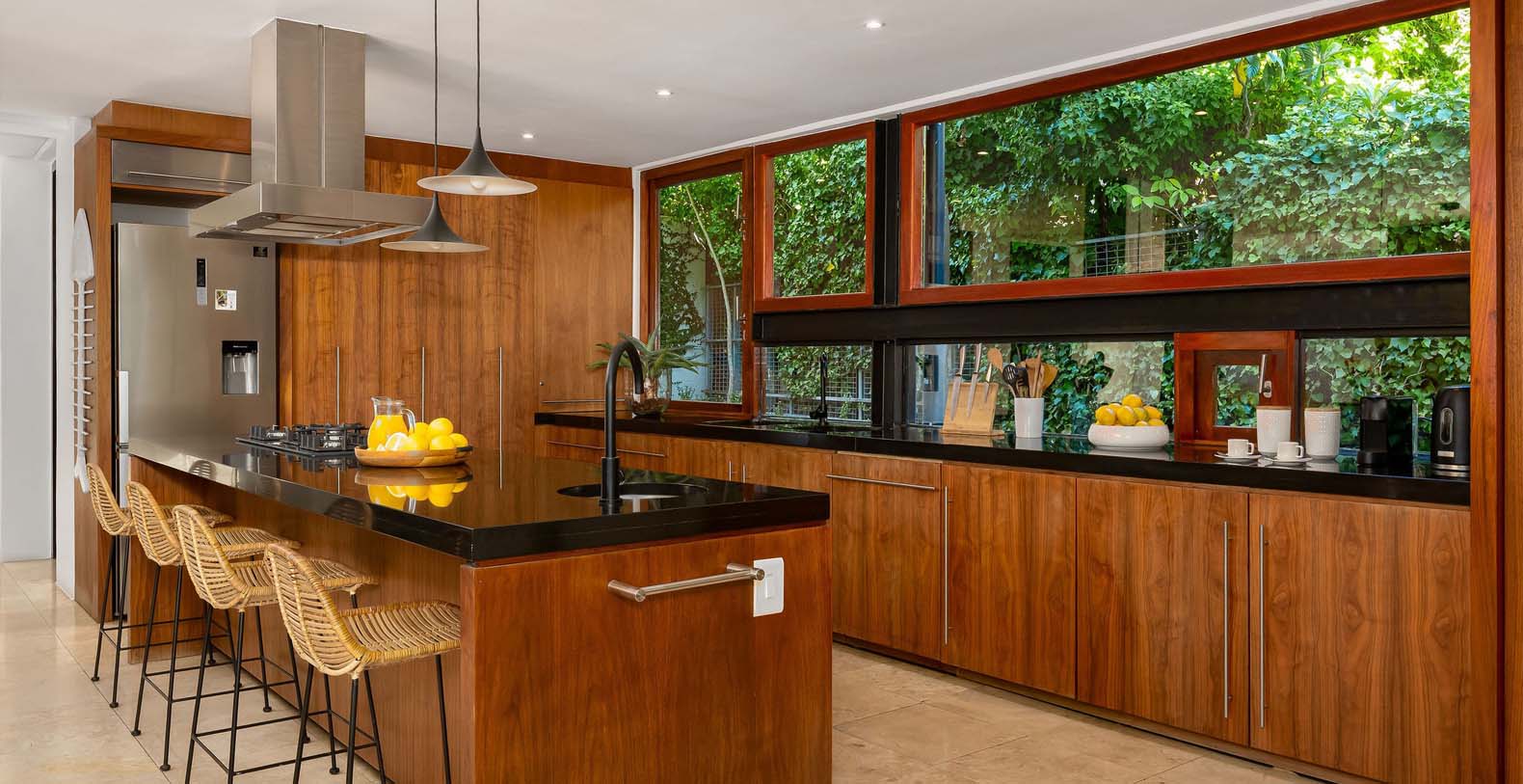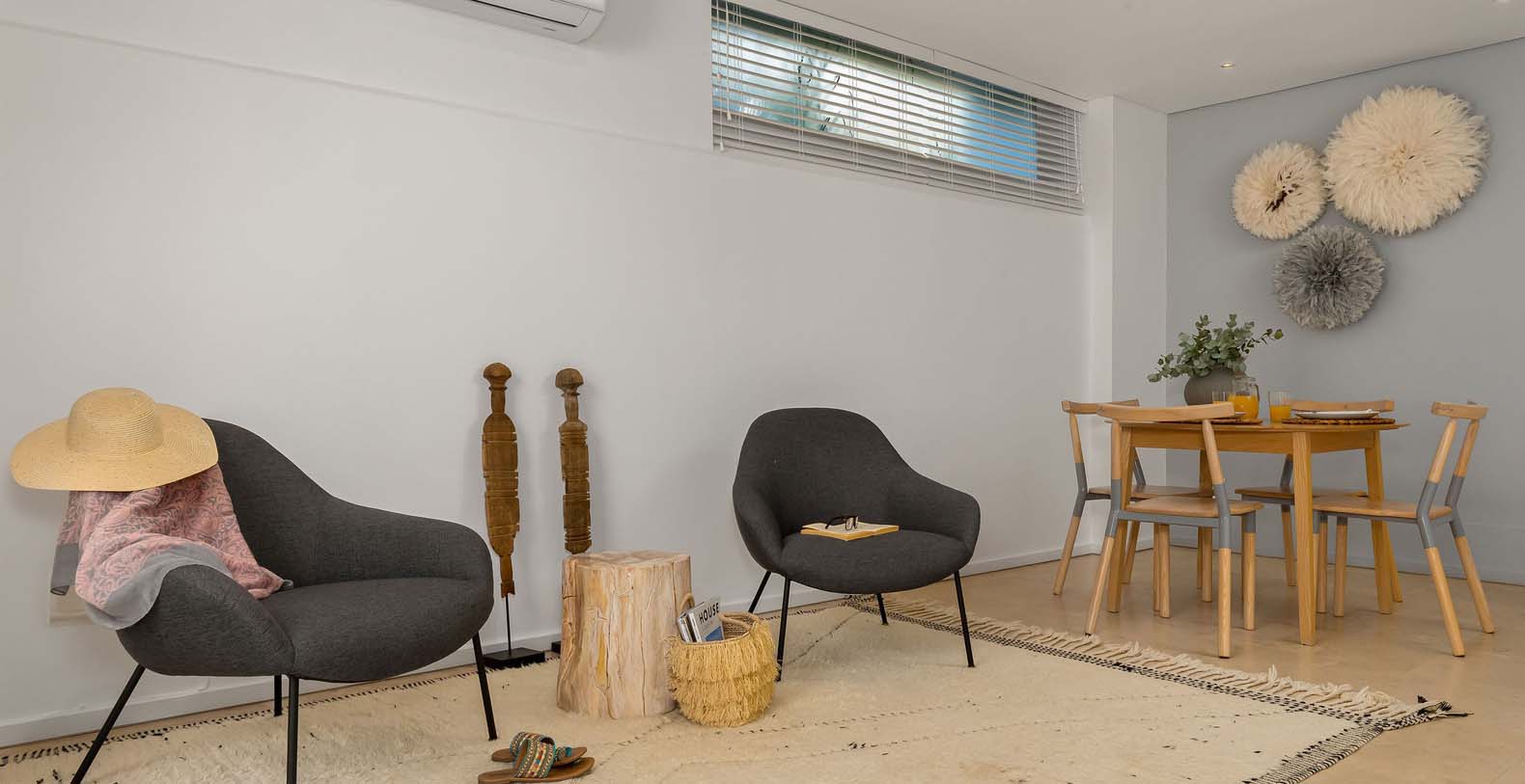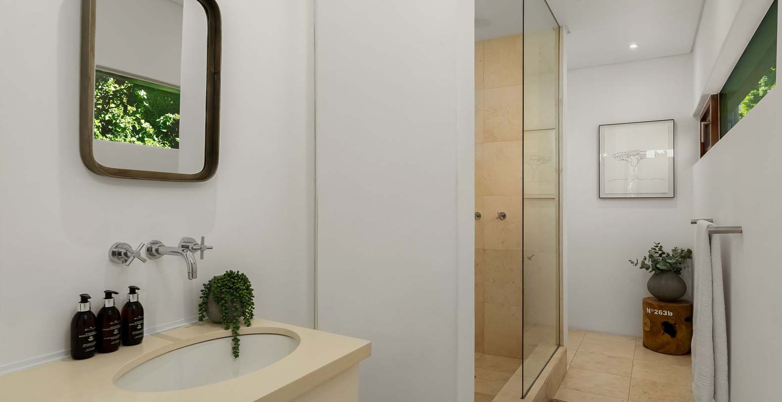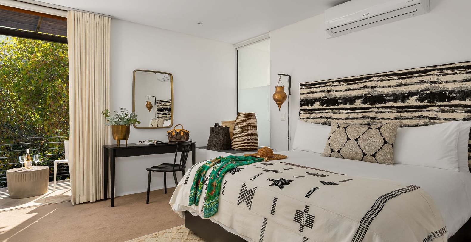 Each of our bedrooms is unique and pristine, cleaned top to bottom before every arrival and departure, upstairs you'll find 4 King Suites, one of those suites has an amazing KXL, which people seem to really love. Three of the rooms have a walk in shower and the 4 inside have air conditioning and heating for your convenience. The 5th bedroom has an outside entrance downstairs, there is a king sized bed that can be made into two twins, a 4 seater dining table and a small lounge area. This bedroom is very special because it puts you in touch with nature and the pool, which most people do really love.