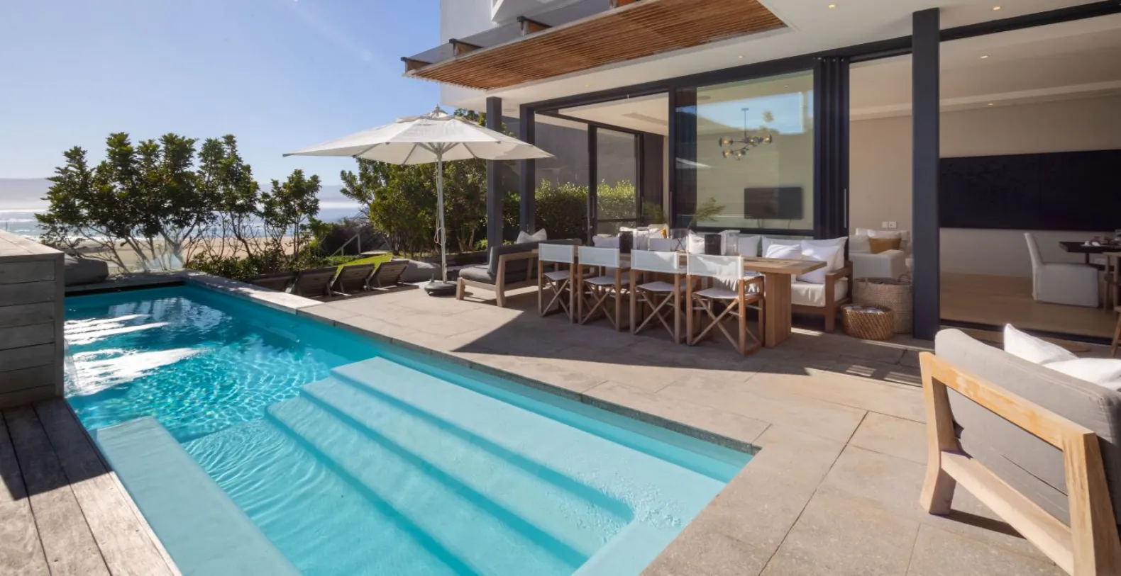 Beachy Head, a stunning vacation rental is positioned between the iconic Robberg and Central Beach and captures the best of Plettenberg Bay. Set in a private gated estate, this luxury four-bedroom villa invites guests to experience contemporary coastal living just steps away from the beach, boutique shops, and world-class restaurants.