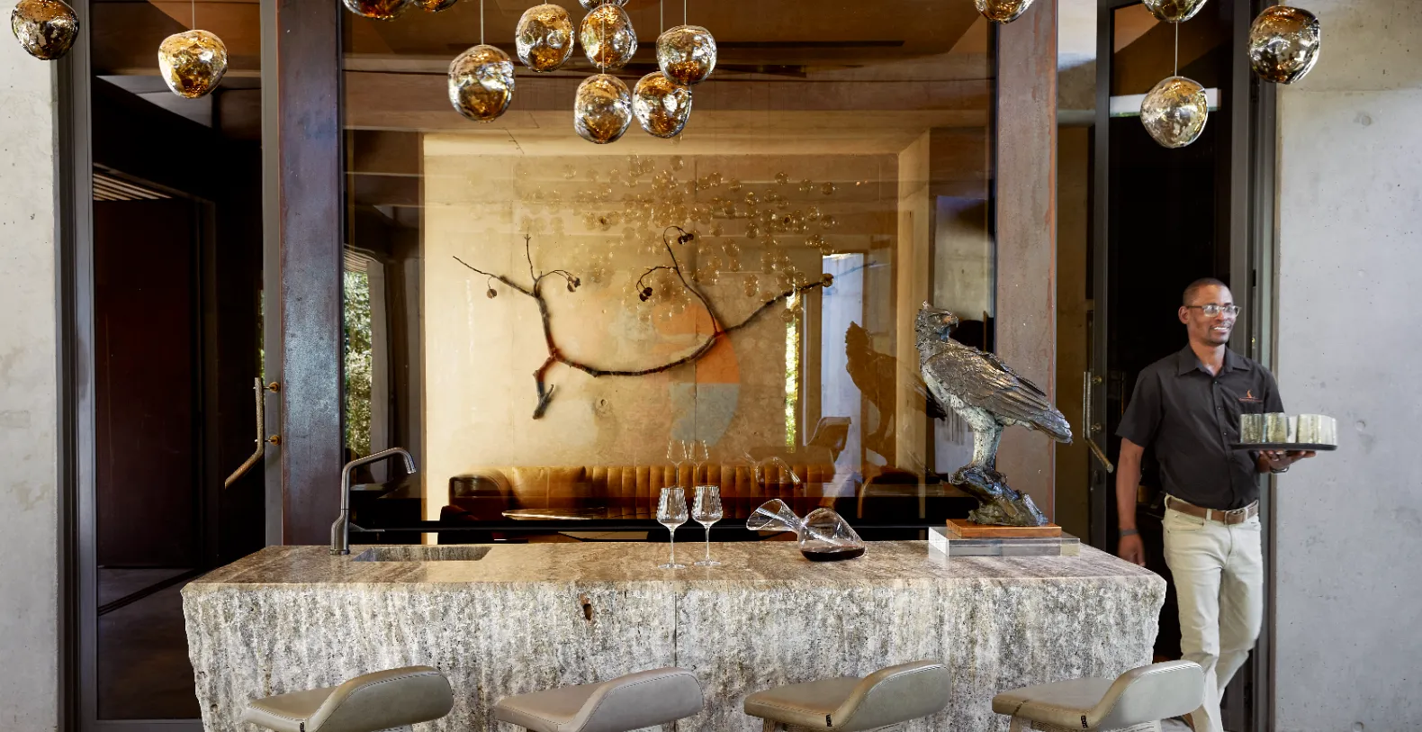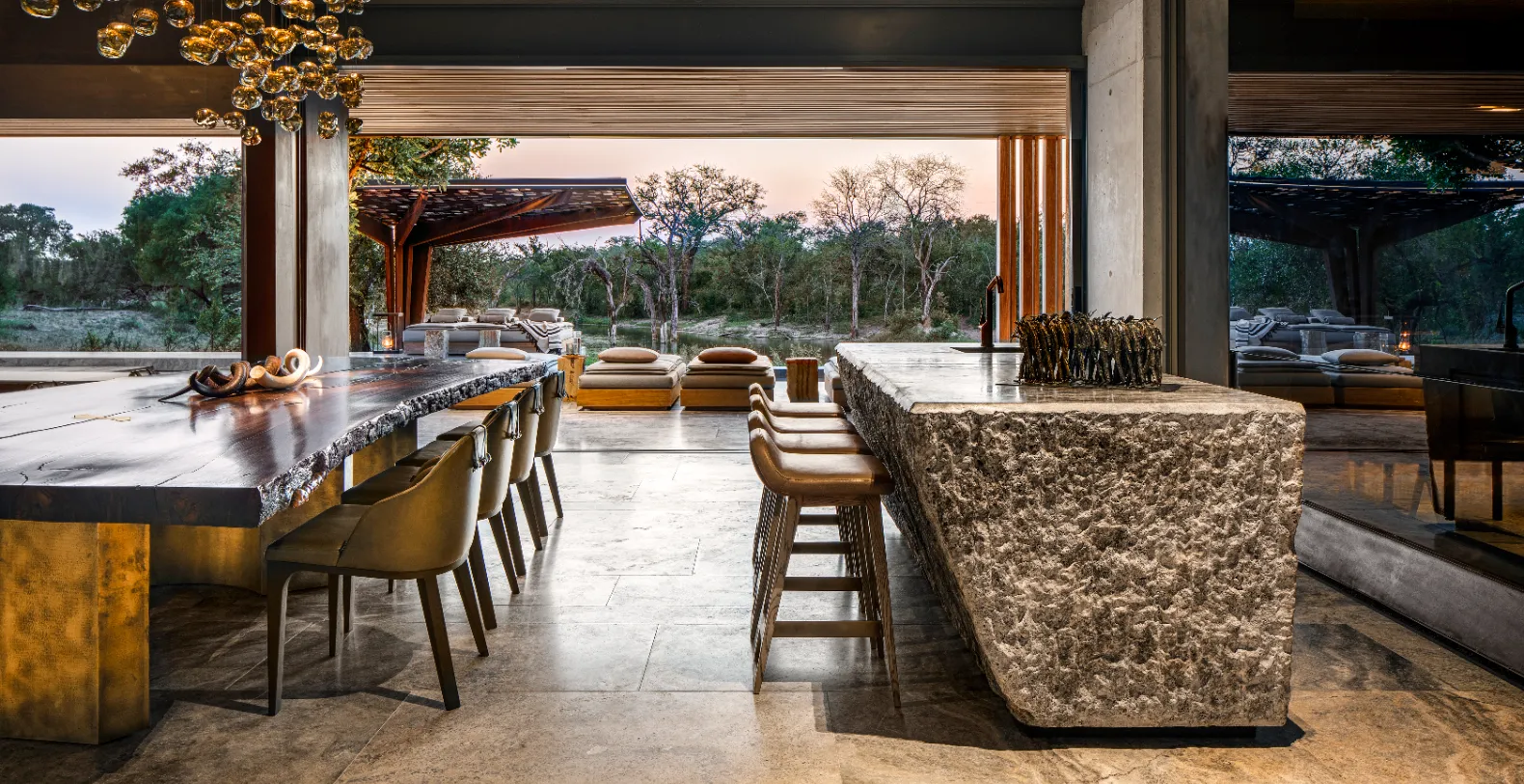 Part of an intimate private lodge comprising just three exclusive-use villas, Mapogo Villa accommodates up to eight guests and is ideal for families, couples, or small groups seeking complete seclusion. The villa is thoughtfully arranged into two distinct components: a shared living pavilion and four expansive private guest suites. The central living space is designed for both relaxation and entertainment and includes formal and informal lounges, indoor dining areas, a fine wine gallery, and a fully equipped chef’s kitchen. Floor-to-ceiling glass opens onto the swimming pool deck and outdoor boma, where fireside dinners beneath the stars create unforgettable evenings overlooking the waterhole.