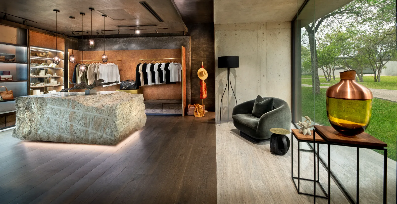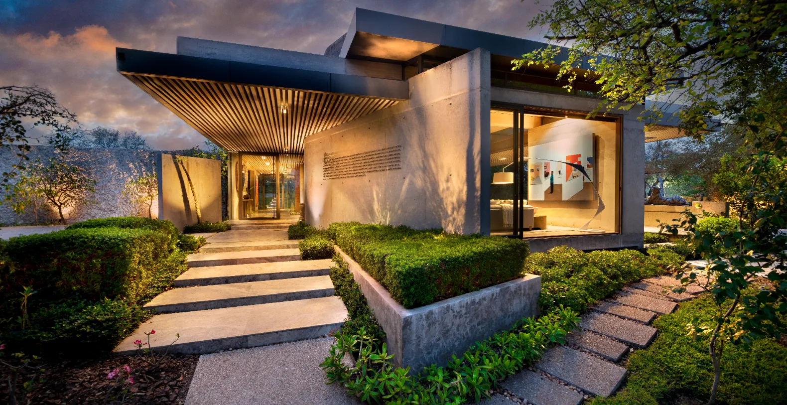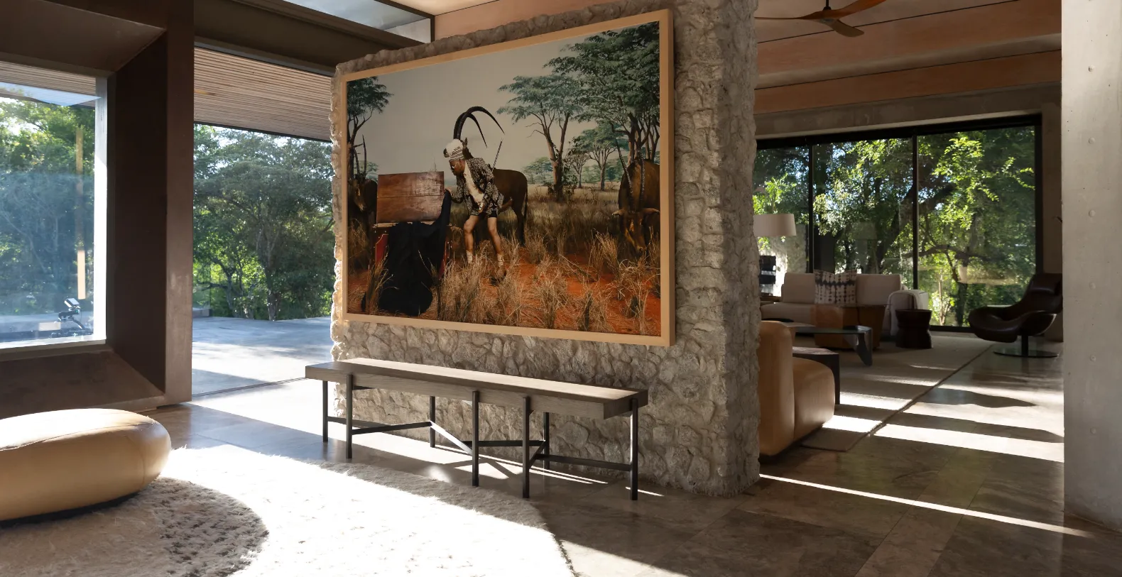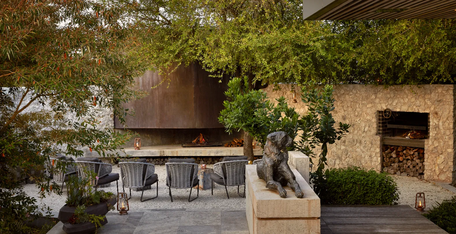 The villa is thoughtfully arranged into two distinct parts: a shared living pavilion and four private guest suites. The central shared space brings everyone together and features elegant formal and entertainment lounges, indoor dining areas, a fully equipped chef’s kitchen, a curated wine gallery, and seamless access to the swimming pool deck. Outdoors, guests can gather around the boma for atmospheric fireside dinners under the stars, surrounded by the sights and sounds of the bush.