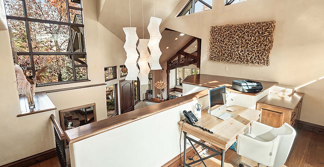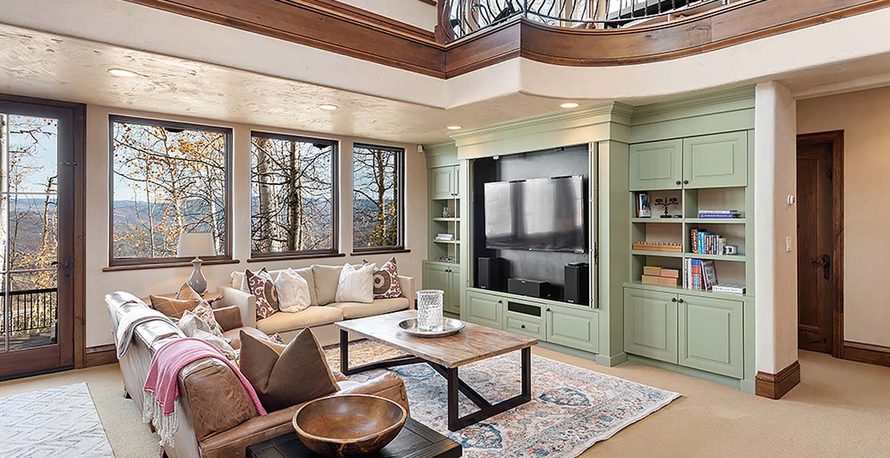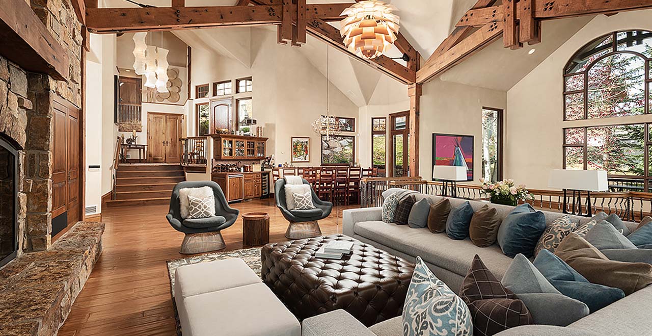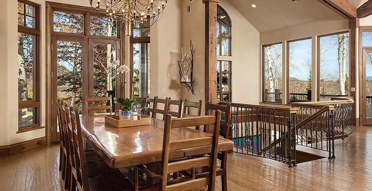 A Wood Road Panoramic is a lovely vacation rental in Snowmass, CO with wonderful views and lovely Chalet feel. As you walk in your eyeline goes down into the beautiful great-room with wonderful fireplace, seating and glass windows that highlight the reason you came to Colorado. The flow of the house really is designed to bring in the natural light and allow for the stunning natural world to take shape around you. Each room is filled with natural woods, vibrant light radiating in through the windows, and the feel of holiday magic in the air.