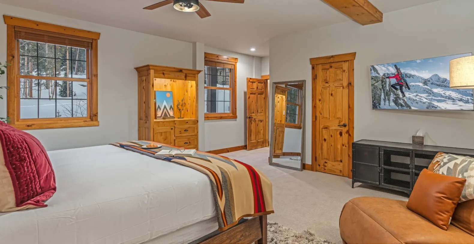 The main living area serves as a natural gathering space, anchored by a cozy gas fireplace and ample seating ideal for evenings spent watching a movie, playing cards, or simply enjoying conversation after a day outdoors. Just steps away, the gourmet kitchen will delight the chefs in your group. Equipped with new professional-grade appliances, expansive countertops, and high-quality finishes, it is perfectly suited for preparing everything from hearty ski-day breakfasts to celebratory dinners. There is even a wet bar with wine refrigerator, adding extra layer of convenience and sophistication.
