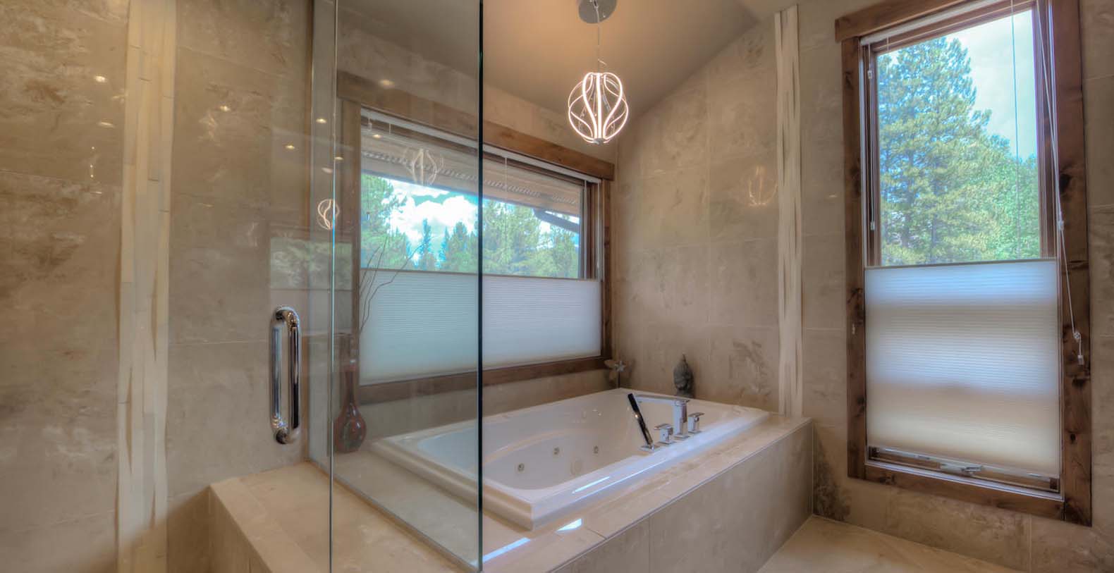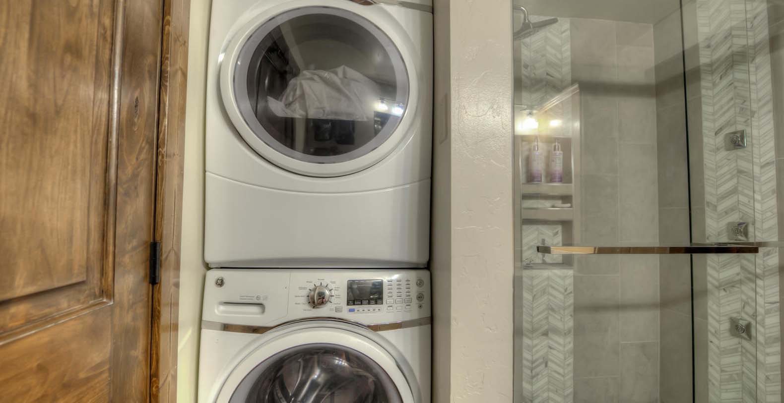 The remaining 3 bedrooms are located on the Upper Level. The Sallie Barber Mine Master features a king bed, TV, mountain views and a large bathroom complete with dual vanity, walk in steam shower and jetted tub. The Baker’s Tank Queen Bedroom and Blue River Trail Twin (can be setup as 2 twins or 1 king bed) share a hall bath. A washer and dryer are located within the upper level hall bath.
