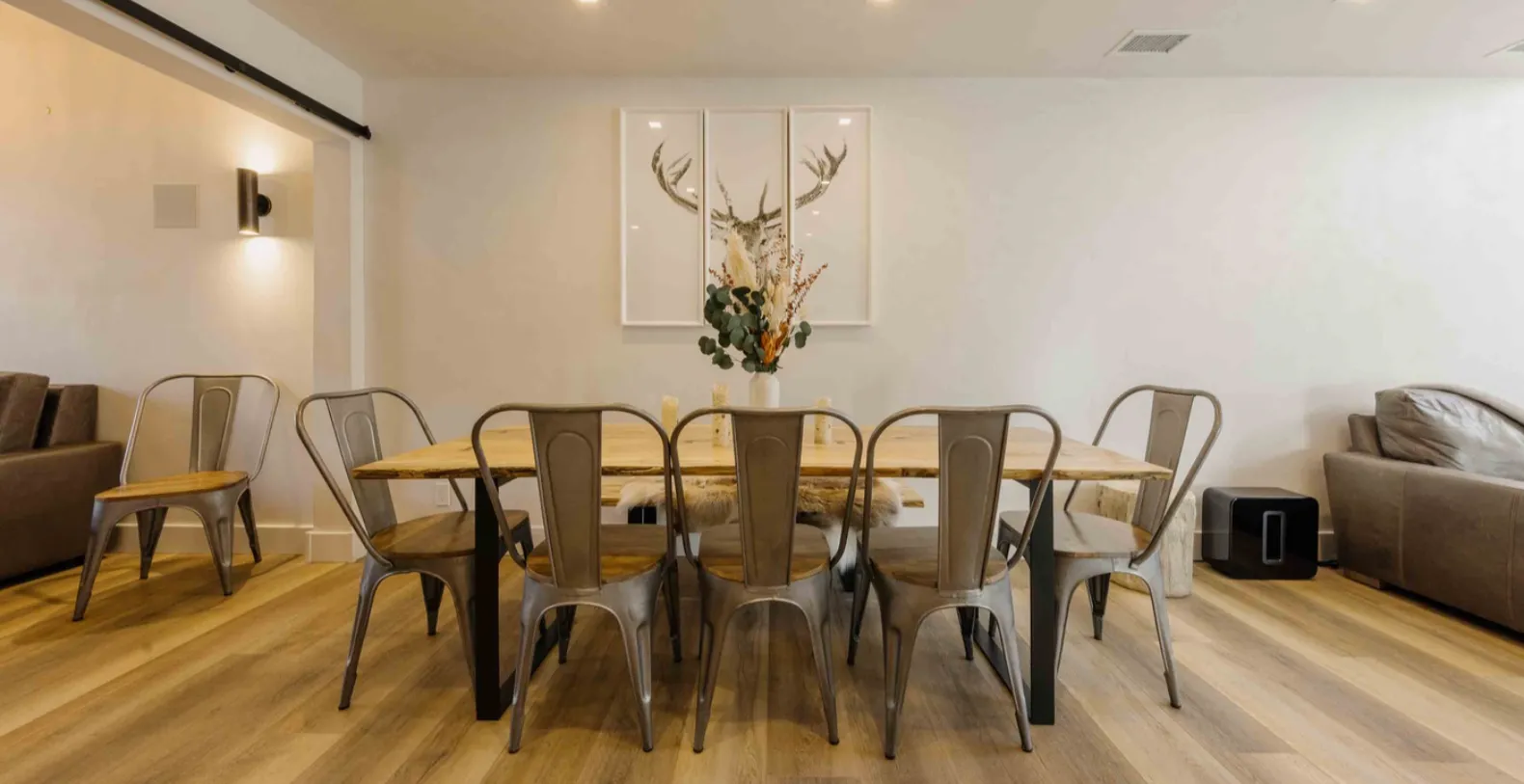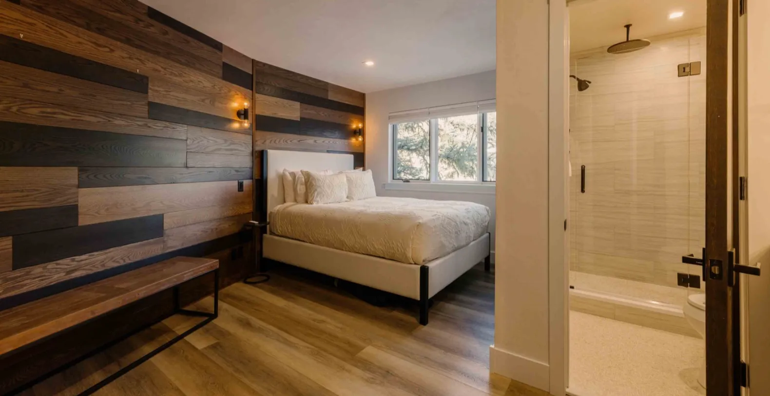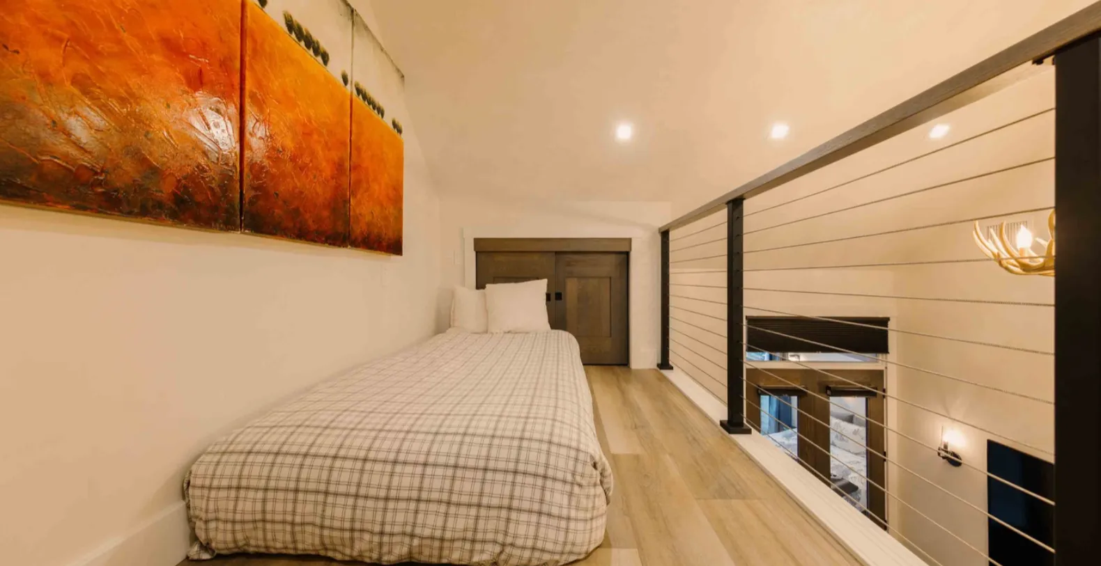 Designed for both comfort and flexibility, Cimarron Chalet sleeps up to 9 guests in 3 bedrooms. Thoughtfully arranged sleeping spaces, including two lofted areas, make this home ideal for families, groups of friends, or multi-generational getaways. The secluded main suite features a king bed, a private balcony, its own living space with a bar, tv, and gas fireplace, as well as a gorgeous ensuite with a double vanity and soaking tub.