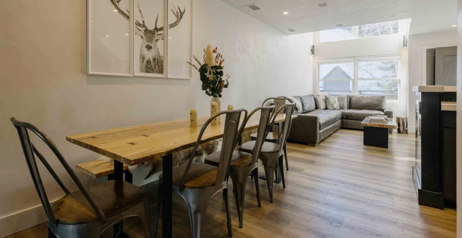 Cimarron Chalet is a warm and beautifully updated mountain vacation retreat set in the heart of Telluride, offering modern comforts and easy ski access. This inviting condo welcomes guests with a bright, open-concept living area where soft natural light filters through large windows.