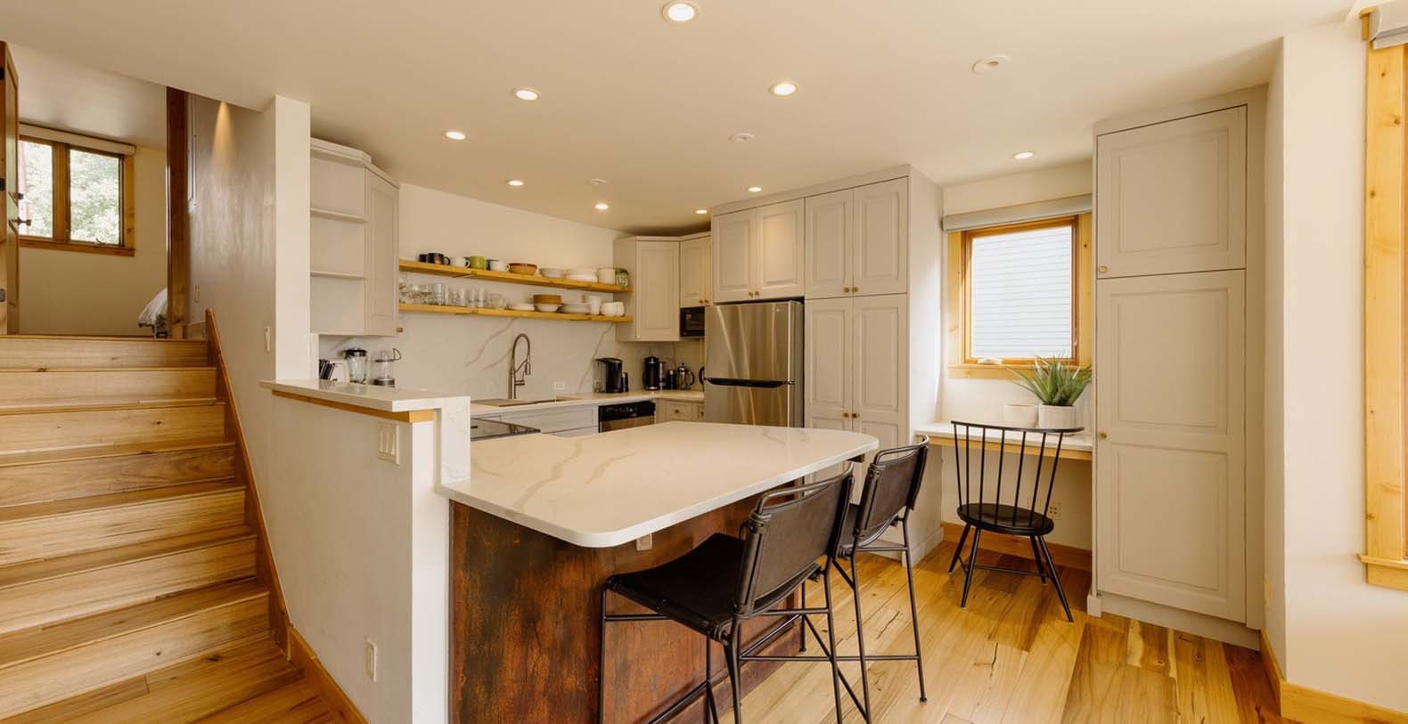 Telluride Lodge Retreat is a lovely vacation rental tucked away in the heart of Telluride, Colorado. This charming 3-bedroom, 2-bathroom luxury rental condo offers a perfect blend of modern elegance and cozy mountain warmth. Ideally situated in the vibrant town of Telluride, the home provides effortless walkability to the town’s eclectic shops, gourmet restaurants, and the iconic free gondola, connecting you to the bustling Mountain Village. For winter adventurers, Lift 7 is just a short stroll away, granting seamless access to Telluride’s legendary ski slopes, making this home an inviting base for both exploration and relaxation.