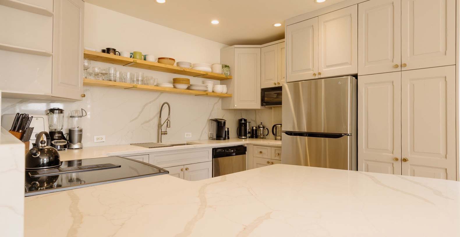 Step inside to a bright and airy interior, where modern design meets a welcoming, cozy ambiance. The open-concept living area features sleek hardwood floors, contemporary furnishings, and large windows that flood the space with natural light. The well-appointed kitchen shines with stainless steel appliances, sleek countertops, and a breakfast bar perfect for casual dining or entertaining. The three bedrooms are thoughtfully designed for comfort: the main with a king bed and the second guest bedroom with a queen bed, while the third provides two twin beds, ideal for families or groups.