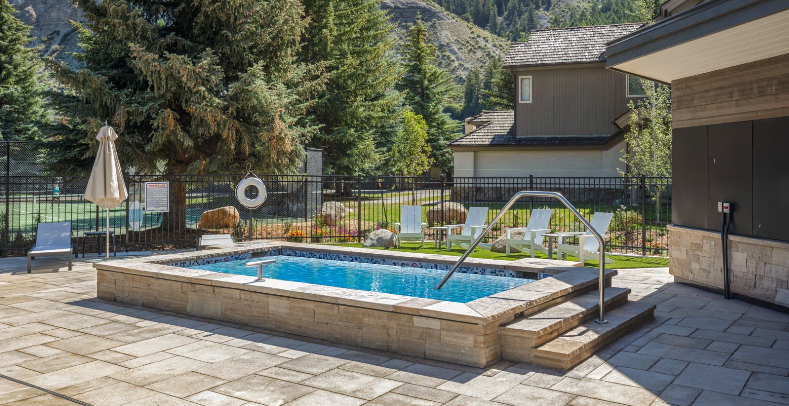 Step outside onto the expansive deck to fully immerse yourself in the mountain setting. This outdoor space is perfect for morning coffee with views, sunset cocktails, or al fresco dining surrounded by fresh alpine air. A private hot tub invites you to unwind under the stars, making it an ideal après-ski retreat or a peaceful way to end a summer day in the mountains.