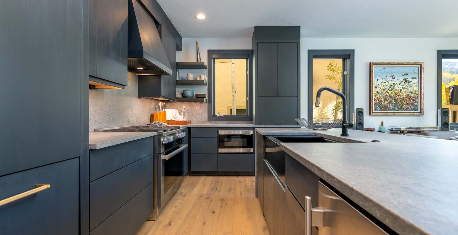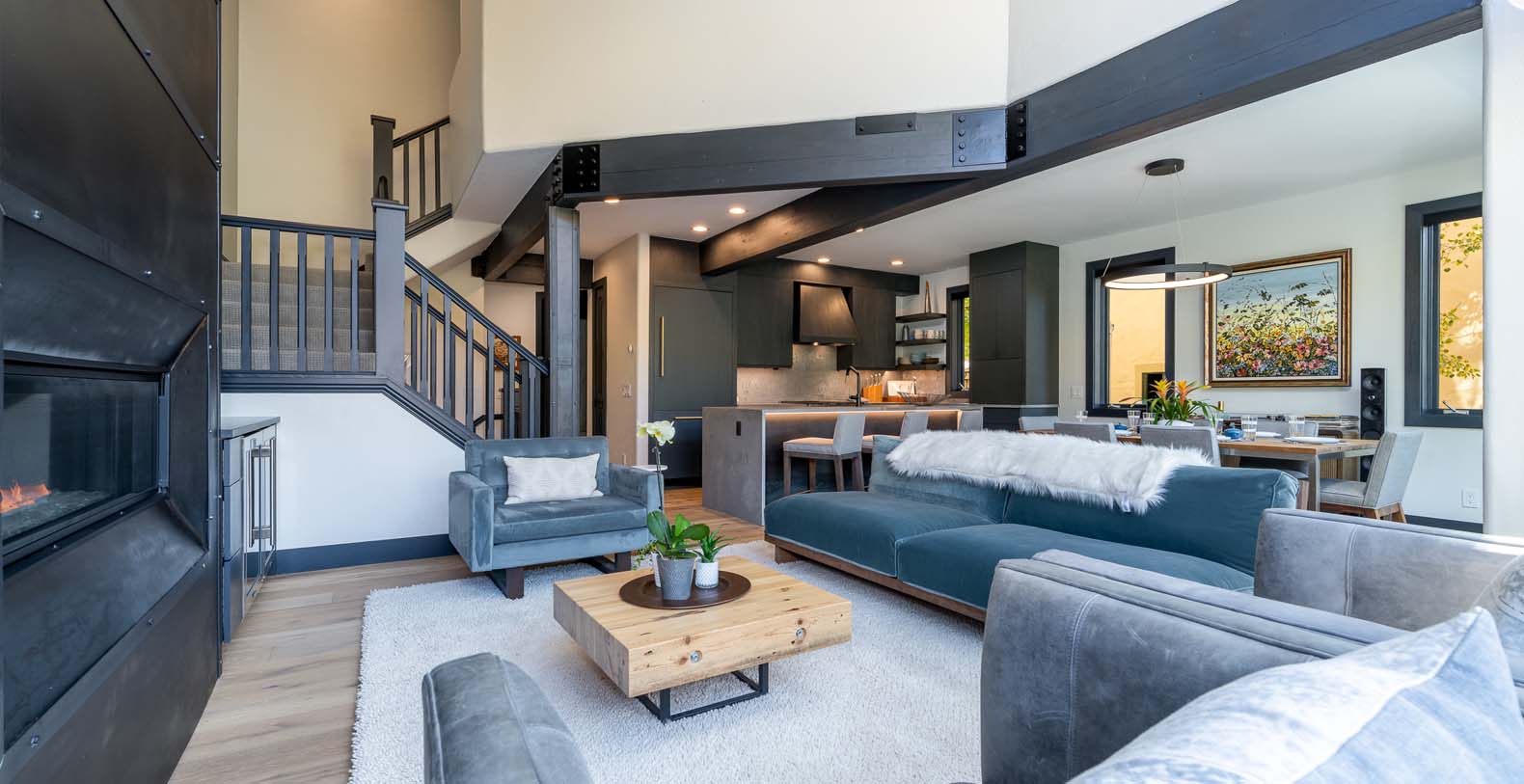 Stone Creek Chalet at The Aspens is a luxury vacation ski rental located in Beaver Creek, Colorado neighbor to Vail. This home has an urban and sleek design that frames a contrasting canvas for the mountain magic dancing through the windows. A premium remodel showcases top-of-the-line finishes and thoughtful touches throughout that are sure to impress. Aspen-lined mountain views peer in from the oversized windows for golden colors accenting industrial elements throughout this multi-leveled townhome with an elevator. Located on the edge of The Aspen Complex just down the hill from Beaver Creek Village. The main living space is perched on the third floor for optimum views with a softly accented living room featuring all new designer furniture and a gas fireplace. Adjacent to the living room is a dining table for six and an impressive workhorse of a kitchen with newly upgraded Miele appliances.