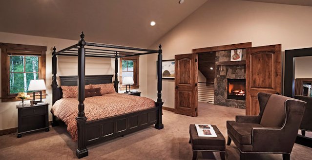 The master bedroom is private and secluded as the only bedroom on the main floor. The King bedroom has a gas fireplace, accesses the hot tub from its own deck, and large walk-in closet connects to the master bathroom. The bathroom has every convenience with double sink, large, marble tub and separate glass shower. The spacious bunk room has a “full over full” bed and “full over king” bed. The top level is just three more steps and has an inviting sitting area with chaise lounge for reading in front of another gas fireplace or gazing out the windows. A King guest master with private deck enjoys spectacular views of the Sleeping Giant and Emerald mountains.
