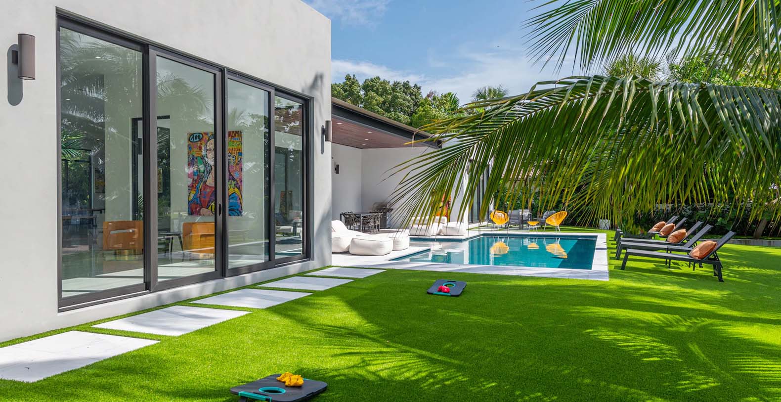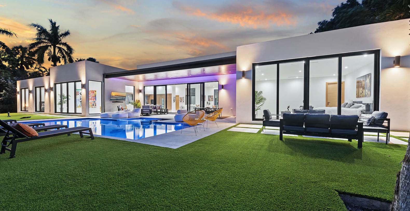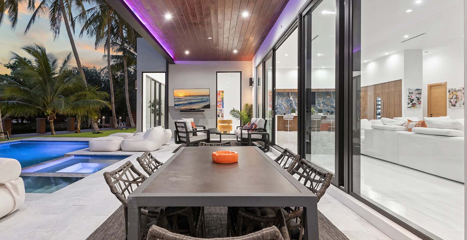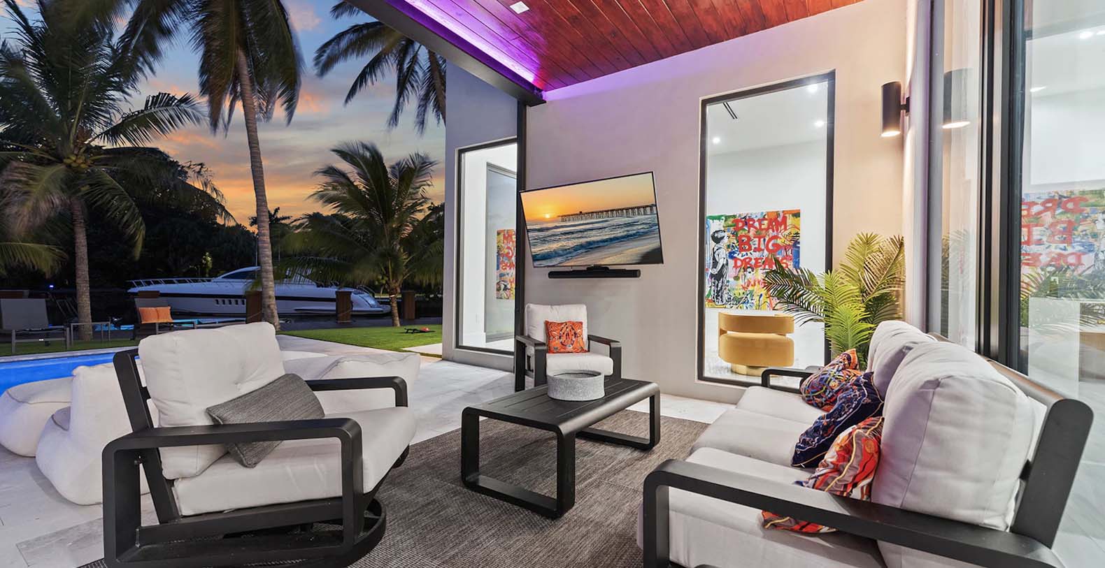 The Joy of Summer is really the epitome of what a vacation rental should be, located in Fort Lauderdale this hits every mark. This beautiful home is refreshing and modern, providing the eye at every point the magic of design and art. There is really nothing quite as beautiful, as when and owner and designer curate a beautiful masterpiece that makes everything beautiful. Giving this feeling of great luxury as you walk through the home and see bright open concept and glass windows that open the house up to natural beautiful Florida Sunshine that breaths through the house so wonderfully. The living area is very large with plush soft sofas that you can melt into while enjoying your big screen television.
