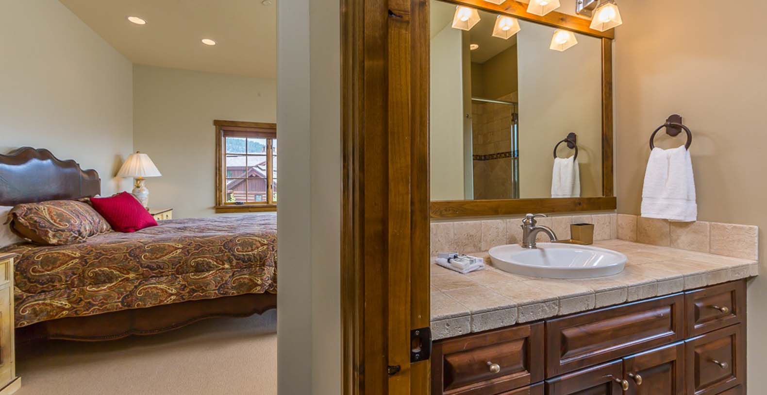 When it’s time to rest, there are two guest bedrooms: one with a king bed and one with a queen bed. The primary bedroom features a king bed and direct access to the deck, providing a perfect retreat. Downstairs, discover two additional living spaces with Smart TVs—one with a game table and wet bar, and another with a spacious sectional sofa, ideal for relaxing or entertaining. For added convenience, the home includes a laundry room and a ski room. This level also houses a guest bedroom with a king bed. The fifth bedroom is located on the top floor and features two full beds with trundles, while the loft offers an extra twin daybed for additional guests. Enjoy a relaxing mountain getaway at Settlement Cabin Vacation Rental in Big Sky. With parking for three cars—two in the driveway and one in a designated bay—getting around is easy. For ski access, a trail just across the street leads directly to the Cabin Lift.