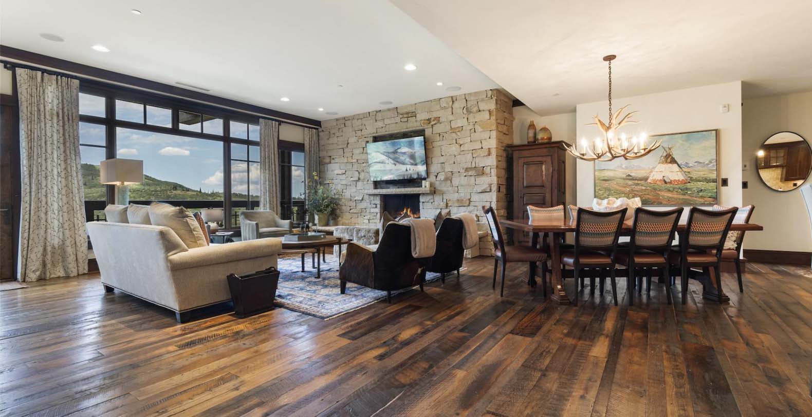Arrowleaf Lodge #415, a luxury ski-in/ski-out vacation rental property located in Deer Valley Resort’s Empire Pass neighborhood, is a 3 bedroom, 3.5 bathroom condo that comfortably sleeps 7. Guests can enjoy exclusive lodge amenities such as ski lockers, a game room with a pool table and shuffleboard, a communal firepit area, and a shared oversized spa-like hot tub. With over 1,700 square feet of living space, this vacation rental features an outdoor balcony with mountain views, a stacked-stone fireplace, and spacious accommodations.