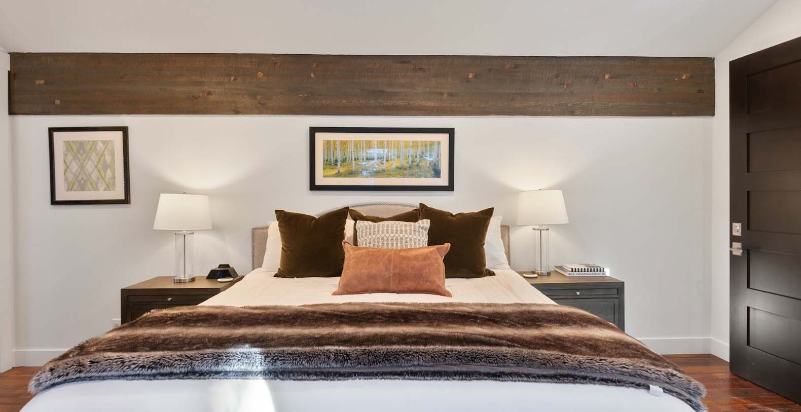 The lower level hosts a welcoming theater room with a plush sectional and a 75” TV—perfect for relaxing after a day on the slopes. A nearby wet bar offers easy access to snacks and drinks, while a washer and dryer, boot warmers, and ample ski gear storage add convenience to your stay. The second floor includes three comfortable guest bedrooms: a queen bedroom, a king bedroom with a private balcony and fireplace, and another queen bedroom, providing restful options for all. The entire top floor is dedicated to the primary suite, featuring a king bed, gas fireplace, and a 47” Smart TV—offering a luxurious retreat with stunning mountain views.