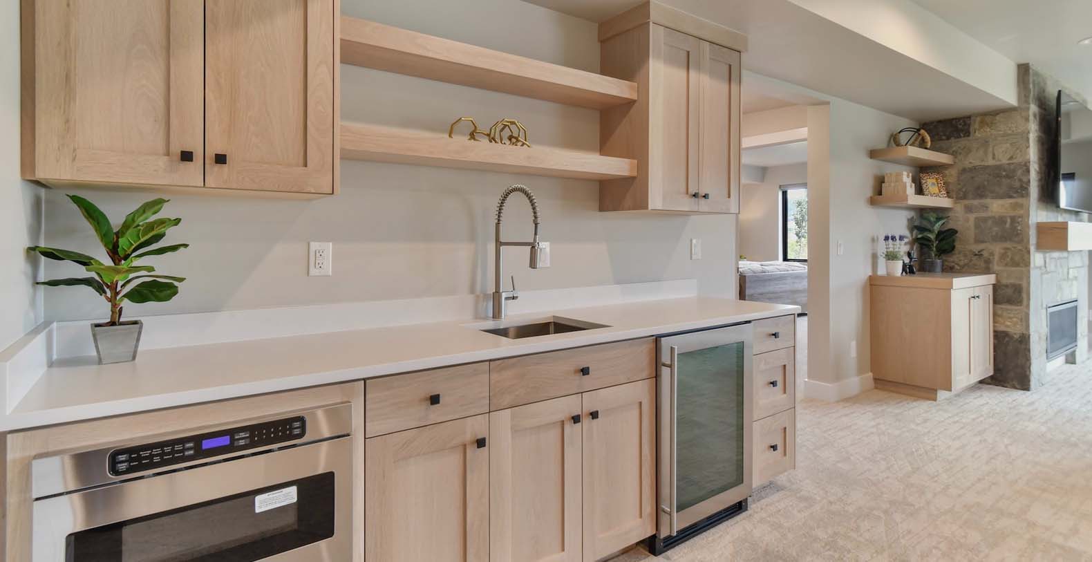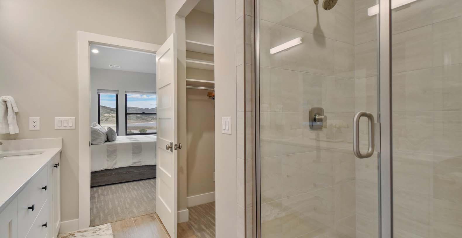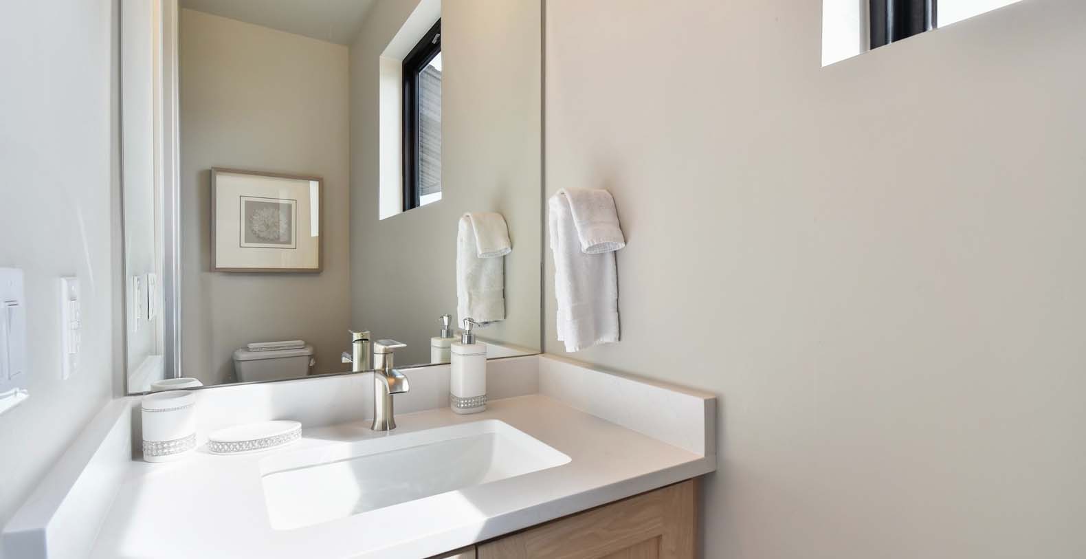 Upon entering this contemporary townhome on the second level, you’ll be greeted by a calming palette of pale wood and white walls, setting a serene atmosphere for relaxation. The stylish kitchen boasts quartz countertops and high-end Viking appliances, with an open layout that includes a 3-seat island/breakfast bar for effortless entertaining. A dining table accommodating eight adds to the spacious feel. Gather in the cozy living area, where a soaring stone-surround fireplace and mounted TV create the perfect setting for chilly nights spent sipping cocoa by the fire. On warmer days, step out to the attached balcony for barbecues and breathtaking views of the sparkling reservoir below. The stunning primary bedroom is conveniently located off the living area and features a king bed, Smart TV, private bathroom, and access to the balcony.