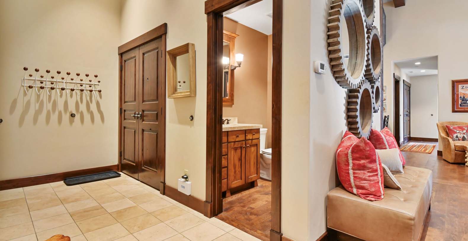 When it’s time to relax, retreat to the lovely primary bedroom, which boasts a king bed, private bathroom with a deep soaking tub, a 58” TV, and a personal gas fireplace. The second guest bedroom features a king bed, 32” TV, and private bath, while the bunk room offers a full-sized bed with a lofted twin, also with a private bathroom and a 32” TV. For added convenience, a laundry room is located near the kitchen area.
