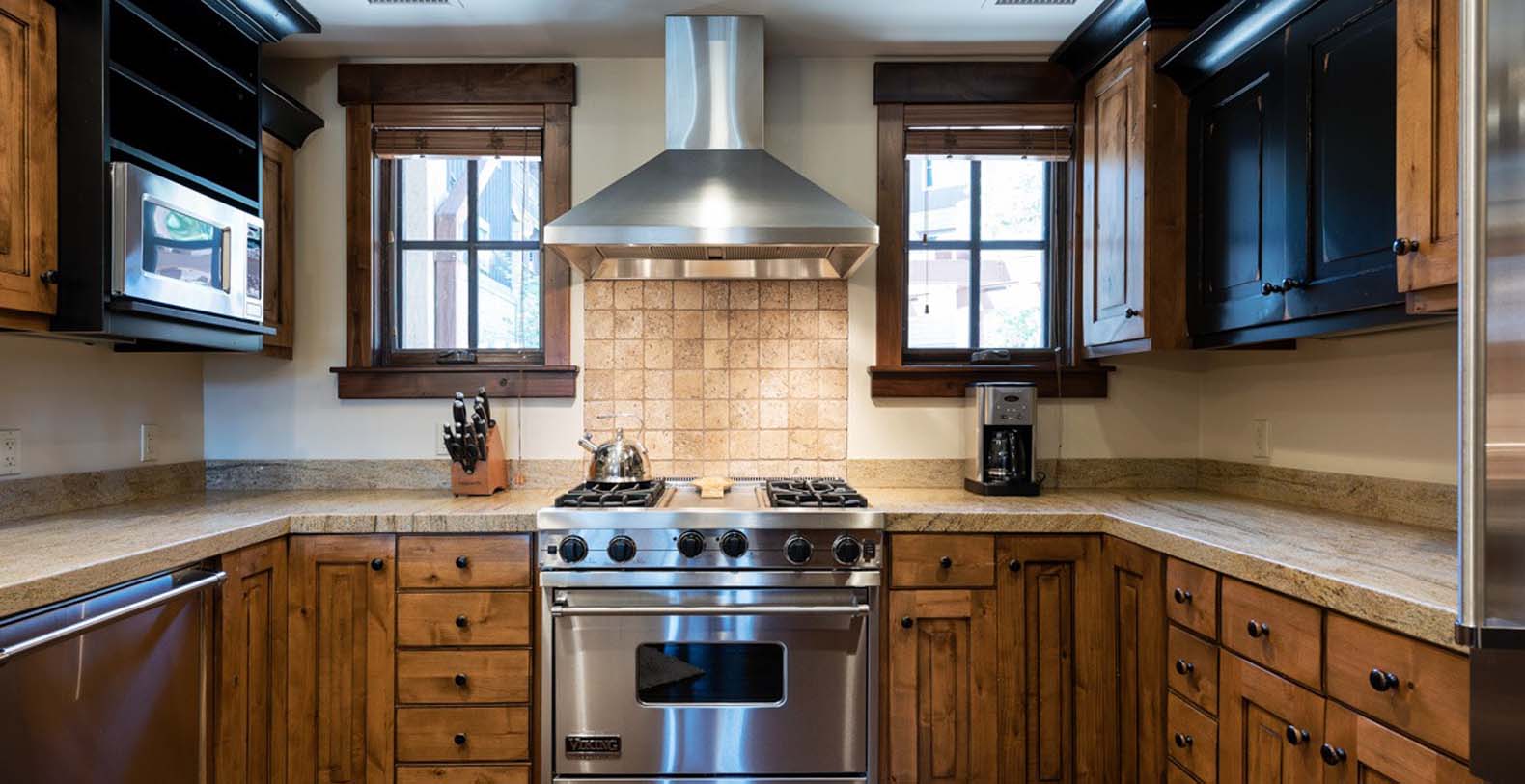 This 3 story townhome features an inviting open layout with large picture windows that flood the space with warm natural light—a cozy haven for friends and family. Relax around the stacked stone gas fireplace, sink into plush armchairs or the soft leather sofa, and enjoy entertainment on the 65" TV. A twin sleeper sofa offers a comfortable spot for overnight guests. The dining area seats 6 for dinners, with a nearby 2-person breakfast bar for quick bites. The gourmet kitchen boasts high-end Viking appliances and ample counter space, inspiring all your culinary adventures. On sunny days, step outside to the patio and fire up the natural gas grill.