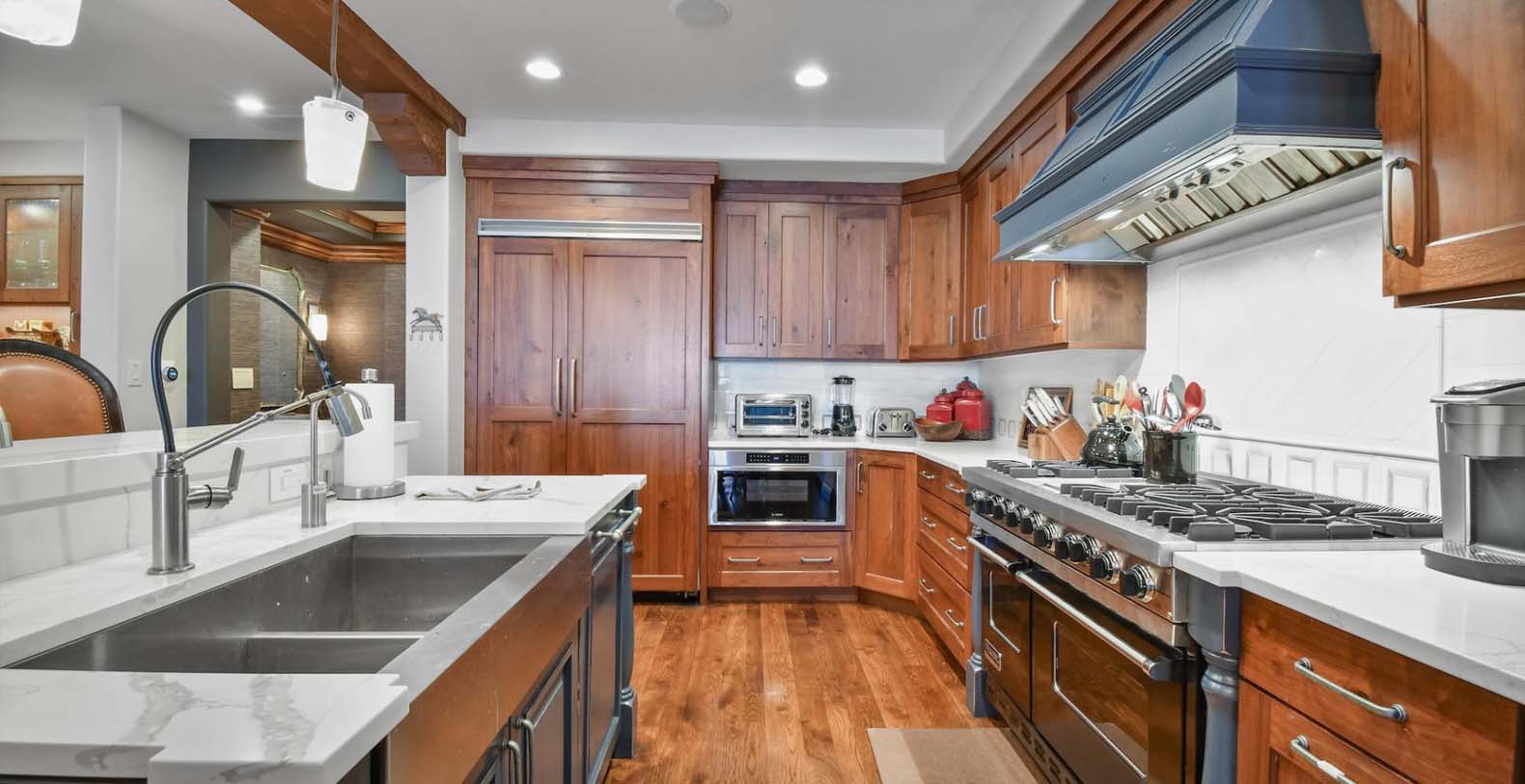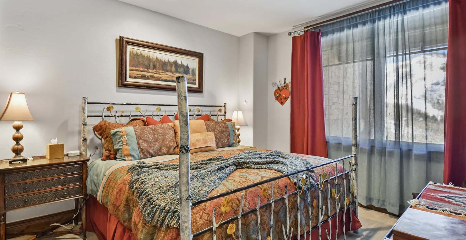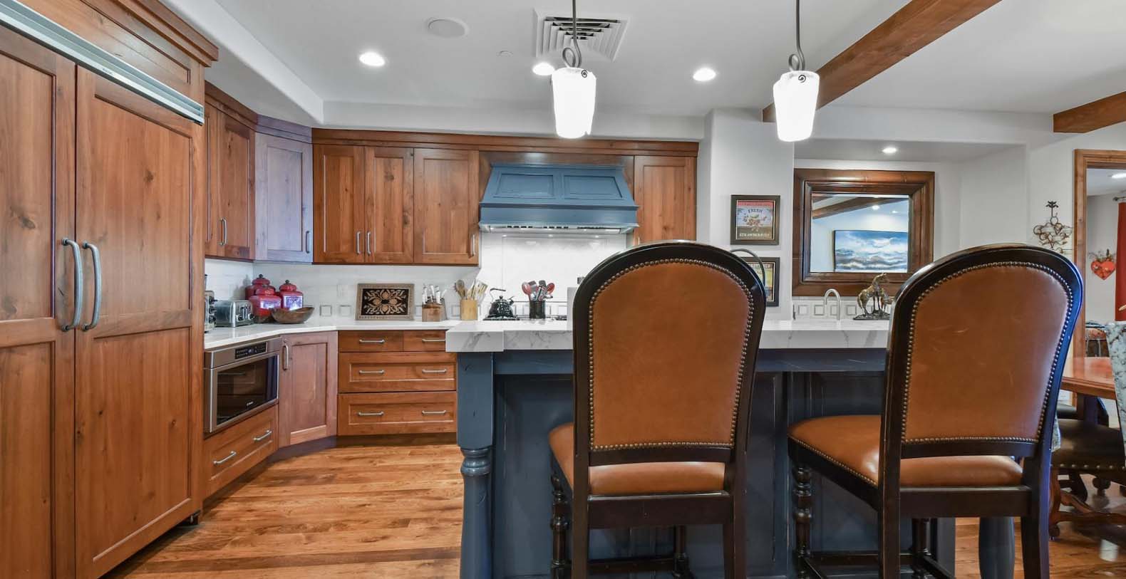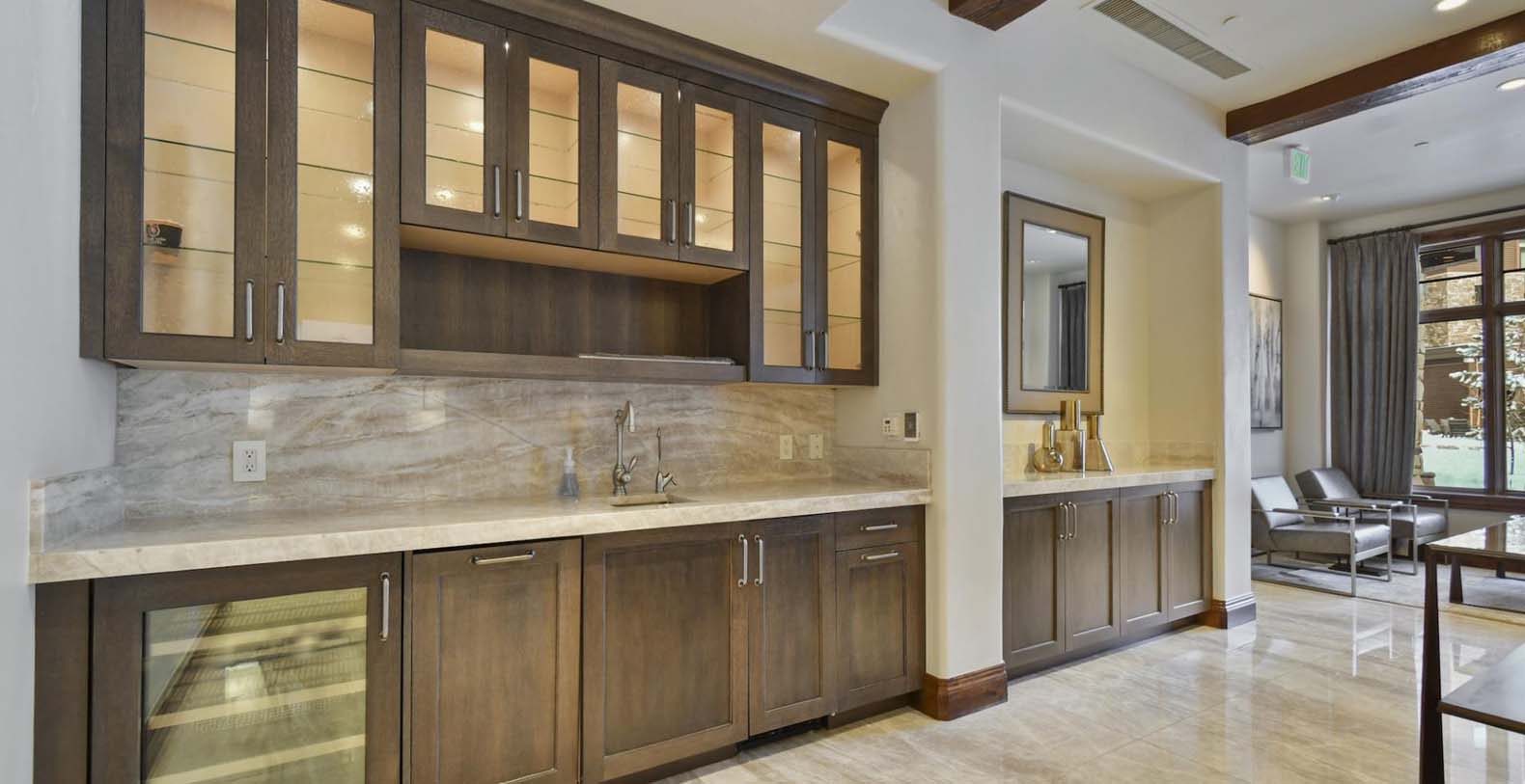 Step inside and discover a wonderful blend of mountain-inspired décor, contemporary furnishings, and luxurious finishes in this single-story condo. The chef’s kitchen is perfect for whipping up everything from intimate dinners to lively family breakfasts, equipped with top-of-the-line Viking appliances. Enjoy meals at the dining table for 6, with extra seating for 2 at the breakfast bar. In the living area, a plush leather L-shaped couch and 3 stylish armchairs surround a grand stone fireplace and a 65” TV, creating an inviting space to unwind. Savor peaceful evenings by the flickering flames with cocktails or hot cocoa while gazing out at the snow-covered mountains through the picture window. Both the primary and guest bedrooms offer a luxurious retreat, featuring king beds, private bathrooms, and Smart TVs. The primary bedroom also includes a private patio, where you can greet the morning with fresh mountain air.