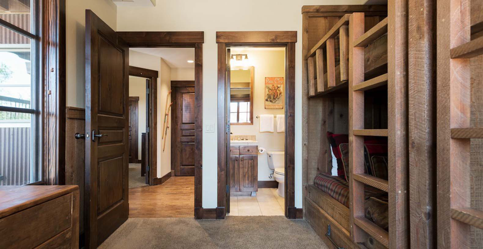 Step inside this single-story gem to find a cozy haven adorned with a refined blend of Western decor, leather furnishings, and natural wood accents. The living area invites you to unwind, featuring ample seating and a stone fireplace, perfect for enjoying quiet evenings with friends over a bottle of wine or binge-watching your favorite shows. The well-equipped kitchen is ready for your culinary adventures, boasting high-end appliances and generous counter space for whipping up hearty breakfasts or snacks for movie nights. Gather around the formal dining table with seating for 4 plus an additional 4 at the breakfast bar. Open the balcony doors to access your own private hot tub, the ideal place to relax after thrilling days of biking, hiking, skiing, or exploring. With a convenient washer and dryer, packing light is a breeze. For a good night’s sleep, choose between the primary bedroom and a guest bedroom, both featuring king beds, private bathrooms, and TVs. A bunk room with 2 twin-over-twin beds and a TV offers extra accommodations for children or guests.