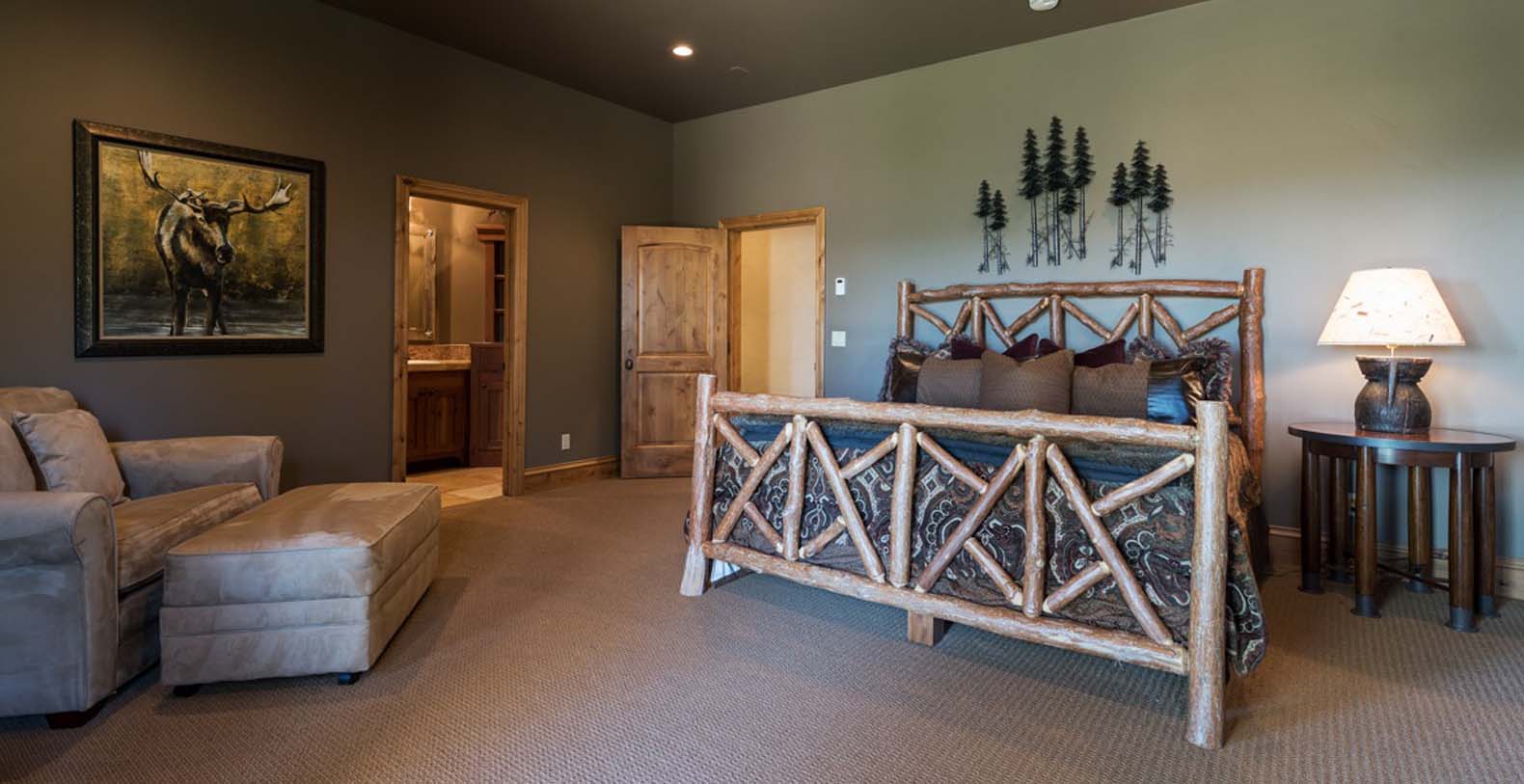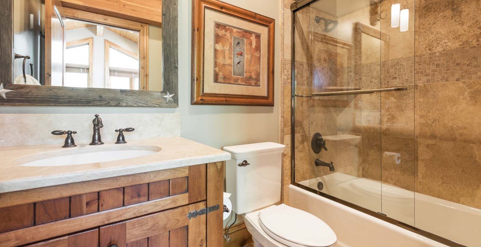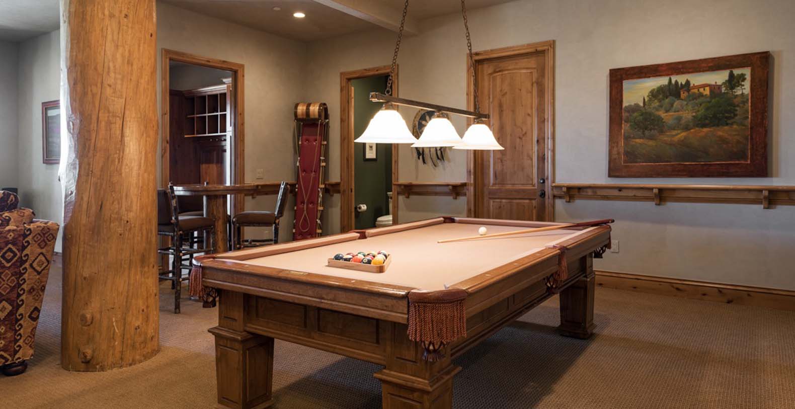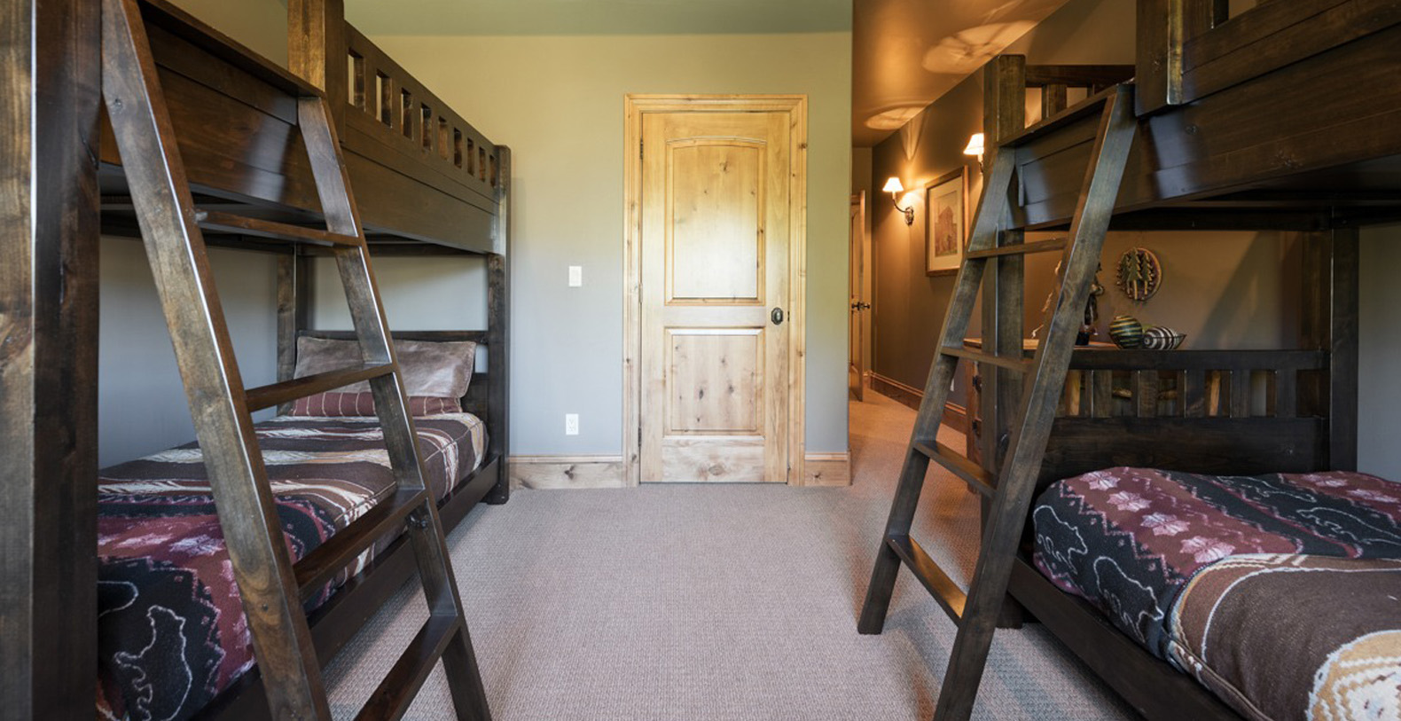 Downstairs, the entertainment level features a game room with a 60” Smart TV, pool table, a four-seat card table, and a full kitchen. The stunning 15-foot theater room is designed for epic movie nights, offering a large screen, leather recliners, and a wet bar. A ski room with lockers keeps gear organized, and a patio hot tub soothes sore muscles after a day on the slopes. Sleeping accommodations include a bunk room with two twin-over-twin beds, a guest bedroom with a queen bed, and another guest bedroom with a king bed and patio access.