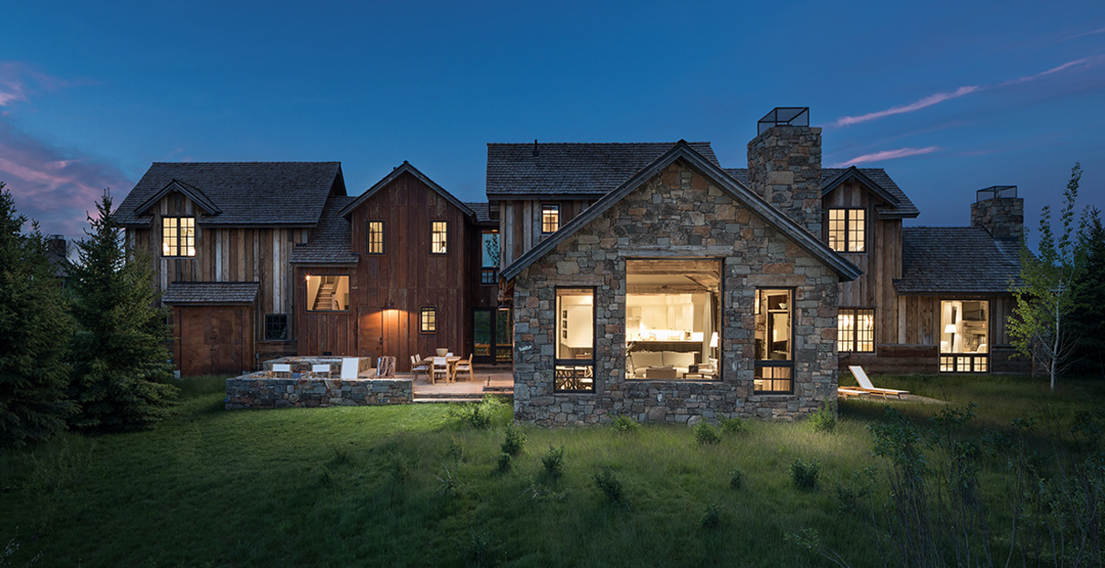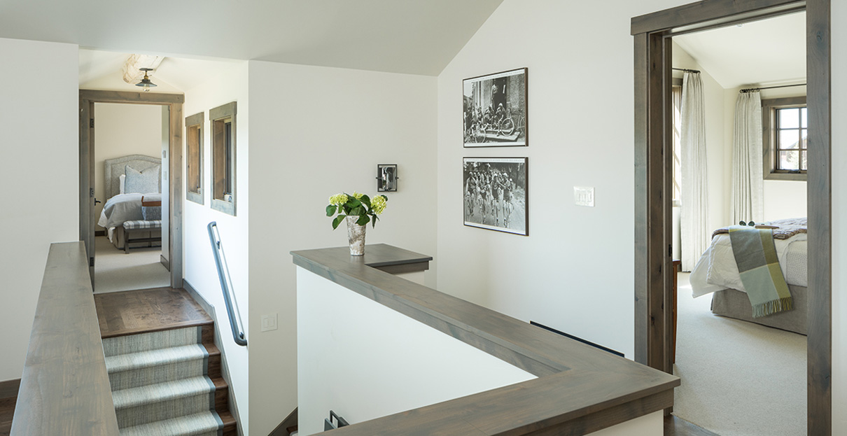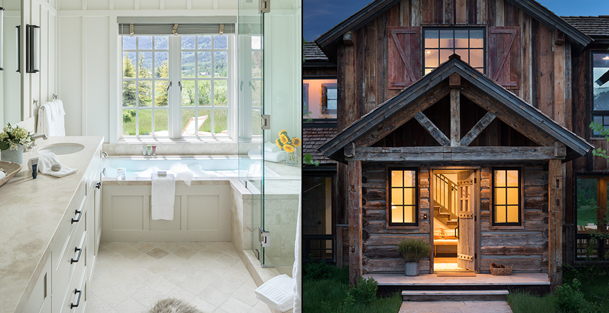A serene home at peace with its magnificent setting and its gracious role as a host to all. This stately residence sits nestled near a stand of pine trees, within sight of the local definition of its name: the treed terrain of Four Pines, a beloved destination outside the Jackson Hole Mountain Resort boundary. Set within Shooting Star—a luxury development in Teton Village—the five-bedroom home offers a winter ski shuttle for easy access to the slopes. Context aside, the aesthetics of the house allure. Decorative barn wood doors flank the window above the front portico. Inside the foyer, serenity awaits with a Moroccan rug lending warmth while a chest of drawers with gold pulls and an antique French jug lend style.