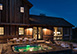 Outside, a flagstone deck beckons with its oversized hot tub. A long dining table surrounded in captain’s chairs encourages outdoor entertainment, while a quartet of chaise lounge chairs faces the mountains.