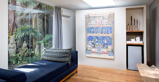 Rising from the banks of a small river shaded by a towering banyan tree, this peaceful villa is blessed with an abundance of tropical flora and immaculate lawns. Partly designed by Alberto Cortes and Yvonne Hulst, the designers responsible for The Purist in Ubud, The Giri Residence in Ibiza and Ryad Dyor in Marrakech, Villa Levi combines contemporary design with eclectic Indonesian antiques and a sublime back-to-nature setting.