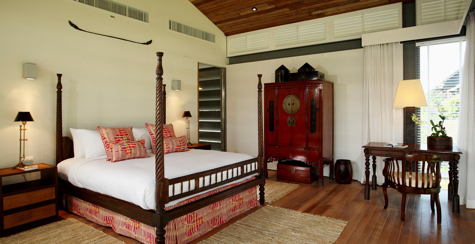 Set on a beachfront plot of nearly 4,400 square metres, Malee Sai is ideal for lovers of the great outdoors and for staging an enchanting event in the tropics. Serious swimmers and playful water babies will all find plenty space in the 25-metre infinity pool, while the surrounding sunbed-lined deck and canopied barbecue dining area offer stylish spots to unwind. At the front corner of the beachfront lawn is a peak-roofed sala offering relaxation and a prime sea view, while those wanting to burn off some energy can enjoy petanque or badminton on the large lawn to the rear of the villa.