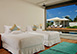 On the ground floor, with easy access to the pool, two sea-view guest bedrooms share a bathroom with a sunken terrazzo bathtub. Two more guest rooms, each with private ensuite bathrooms, are on the floor above. Each of these peak-roofed rooms – two furnished with twin beds and two with king-beds – is a comfy retreat.