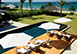 This lavish poolside suite has a vaulted roof and fabulous sea views and is furnished with a king-sized bed, wicker lounge chair, work desk and walk-through wardrobe. In the ensuite bathroom is a romantic sunken terrazzo bathtub.
